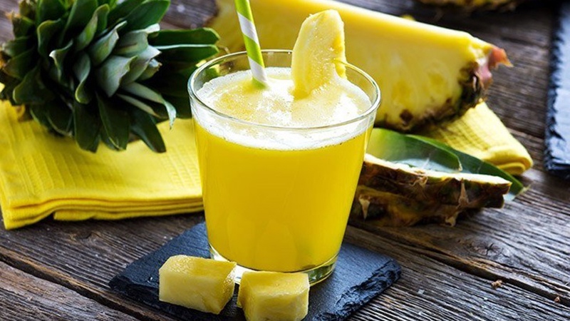 Dứa chứa nhiều vitamin A, C, mangan, kali… Uống sinh tố dứa giúp làm mềm khung xương chậu, dễ chuyển dạ. Chính vì thế sinh tố dứa tốt và phù hợp với mẹ bầu giai đoạn cuối thai kỳ. Lời khuyên cho mẹ là nên dùng 1-2 ly/tuần.