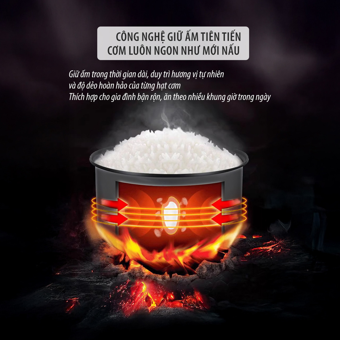 Công nghệ ủ ấm 3D ở của nồi cơm điện Kalpen giúp giữ ấm lâu
