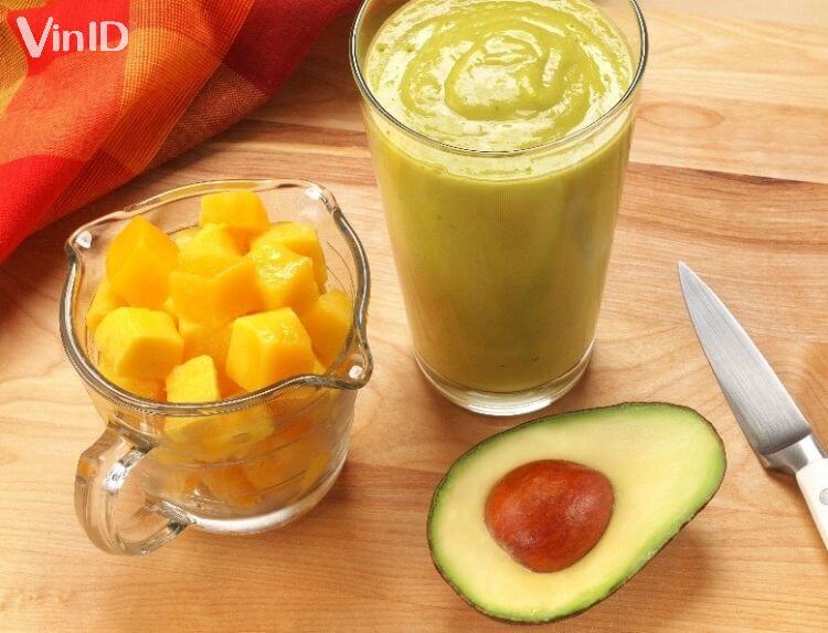 - B1: Xoài, bơ rửa sạch, bỏ vỏ lấy phần thịt bên trong cắt thành miếng nhỏ.