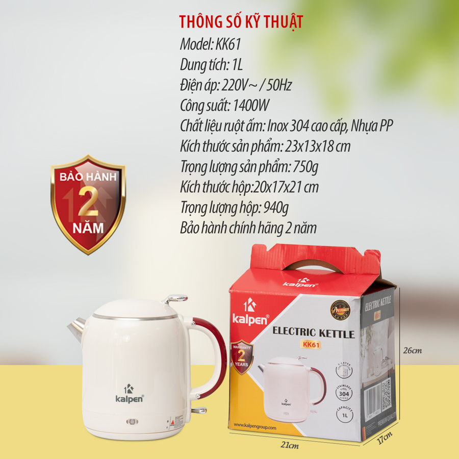 Đặt mua ngay ấm đun nước Kalpen KK61 chính hãng tại Kalpen.vn để nhận ưu đãi hấp dẫn cùng chế độ bảo hành 2 năm!