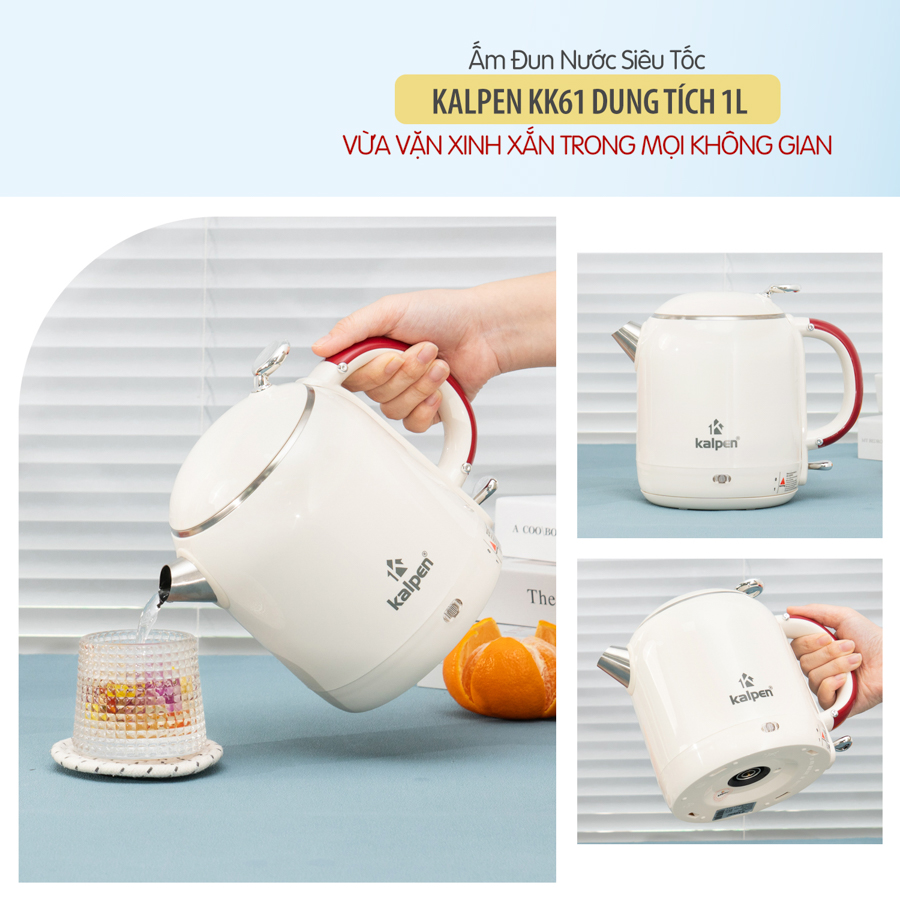 Ấm đun nước siêu tốc Kalpen KK61 dung tích 1L không chỉ giúp bạn có nước sôi nhanh chóng mà còn mang lại cảm giác yên tâm mỗi khi sử dụng.