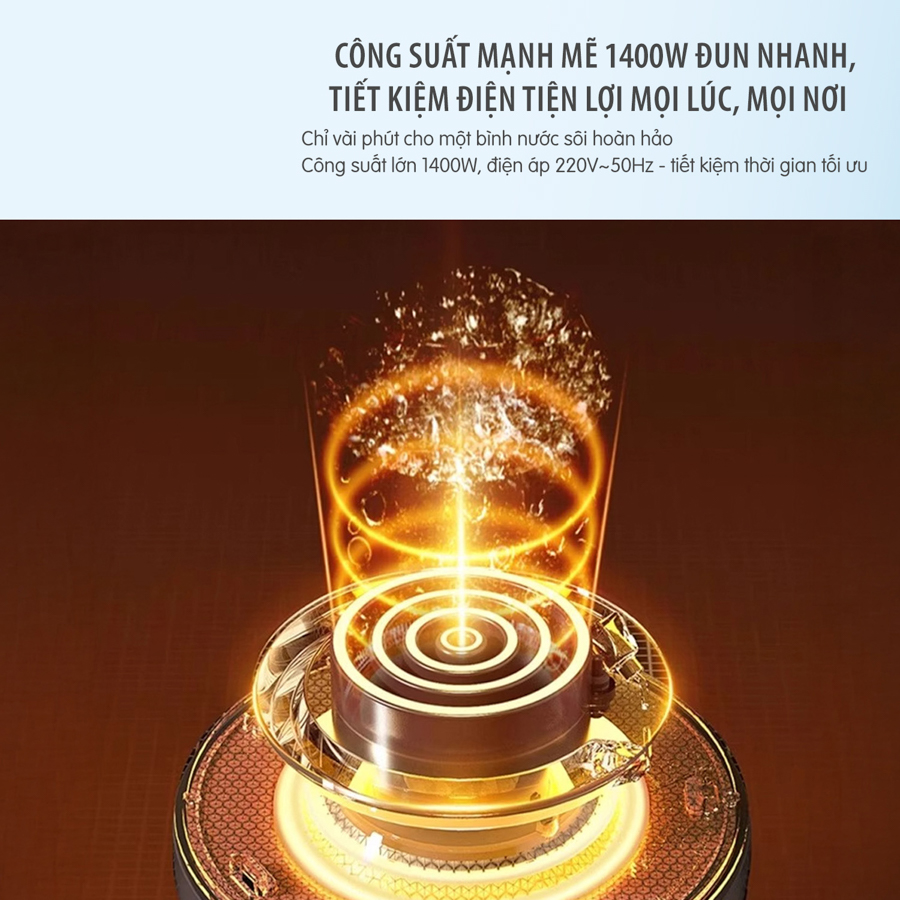 Đặt ấm đúng vị trí trên đế xoay 360°, đảm bảo tiếp điện chắc chắn.