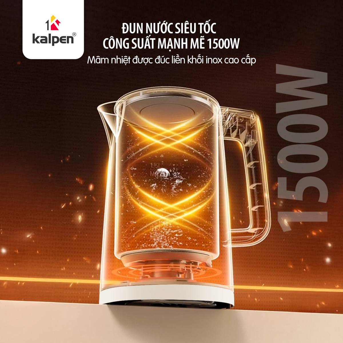 Với công suất cao, ấm đun siêu tốc Kalpen DA2 giúp đun sôi nước chỉ trong 4-5 phút, tiết kiệm thời gian đáng kể so với các loại ấm đun truyền thống. Dung tích 1.8 L đủ lớn để bạn có thể pha trà, pha cà phê, nấu mì, hoặc đáp ứng nhu cầu nước nóng cho cả gia đình mà không cần phải đun lại nhiều lần.