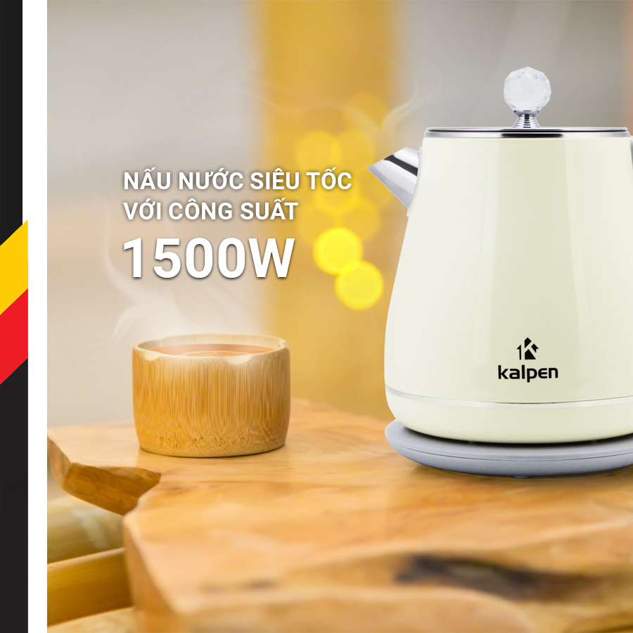 Kalpen KK9901 sở hữu công suất mạnh mẽ lên tới 1500W, giúp nước đun sôi chỉ trong vài phút. Nhờ đó, người dùng không chỉ tiết kiệm thời gian mà còn tiết kiệm điện năng so với các dòng ấm công suất thấp.