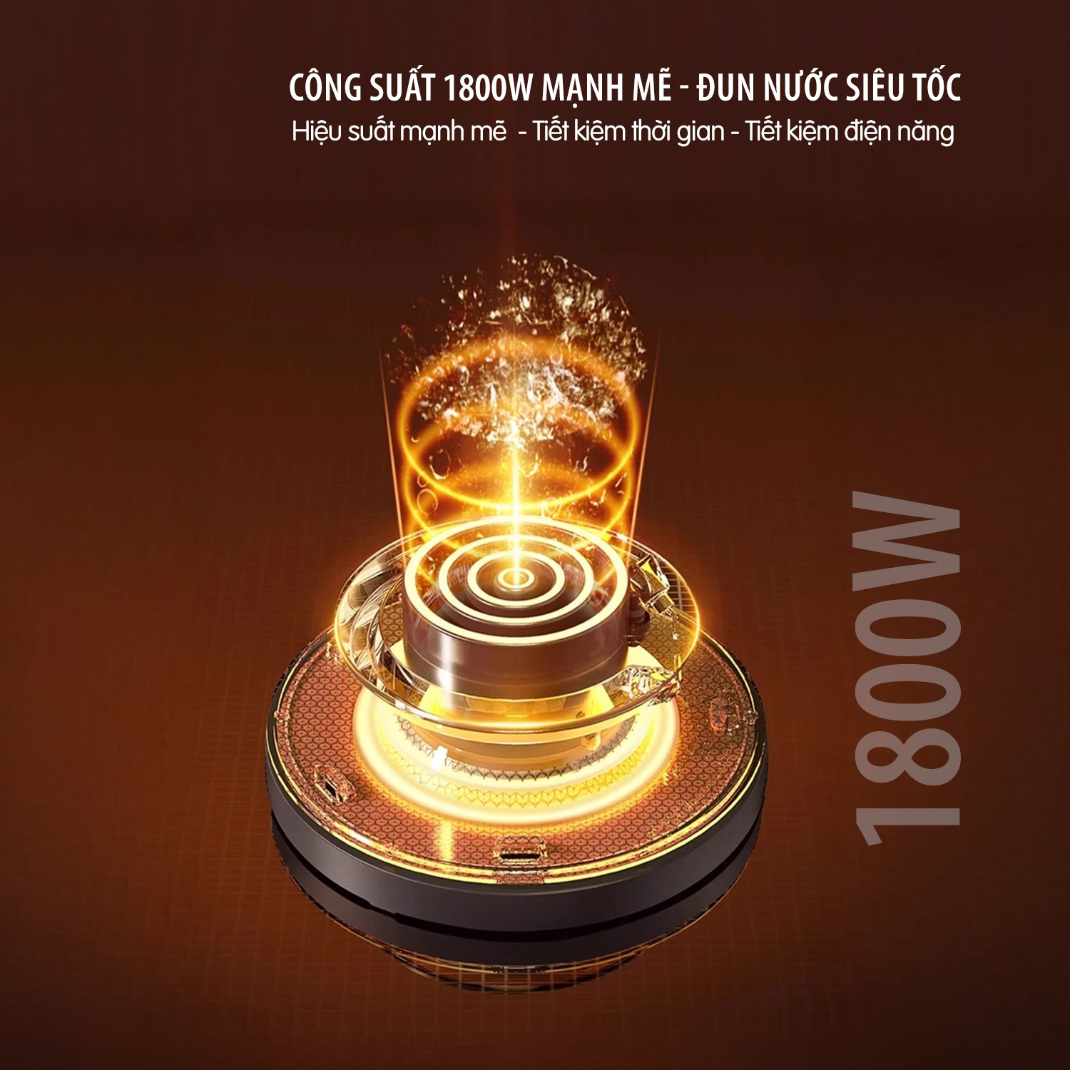 Đun nước nhanh chóng nhờ công suất 1800W.