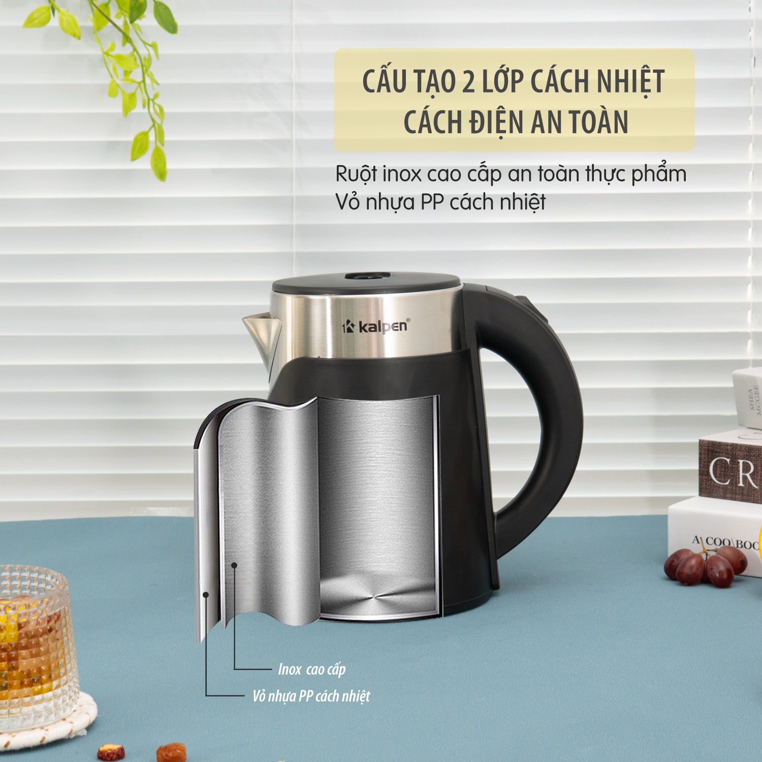 Khác biệt so với nhiều dòng ấm siêu tốc thông thường, Kalpen AR12 được thiết kế với cấu tạo 2 lớp thông minh: