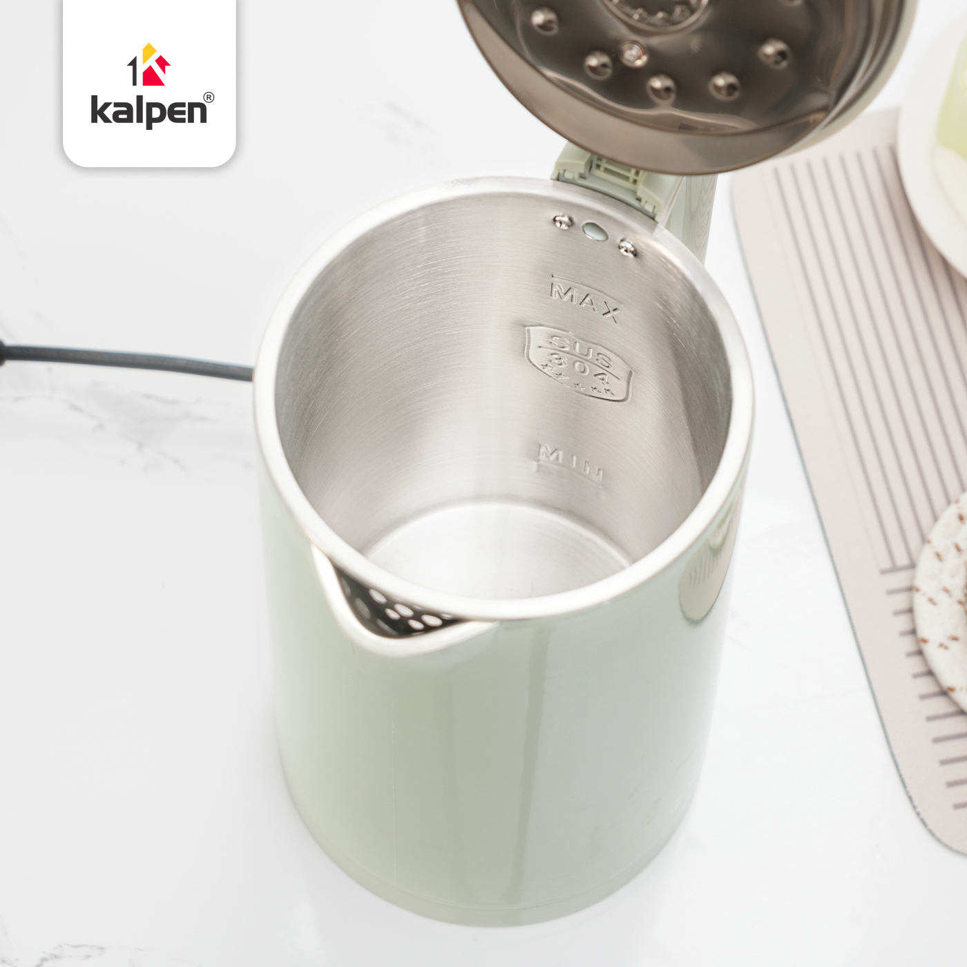 Kiểu dáng của Kalpen AR17 tối giản nhưng thanh lịch với màu xanh mint hiện đại, trẻ trung, như một điểm nhấn trong nhà bếp đầy xoong chảo và dụng cụ nấu ăn.