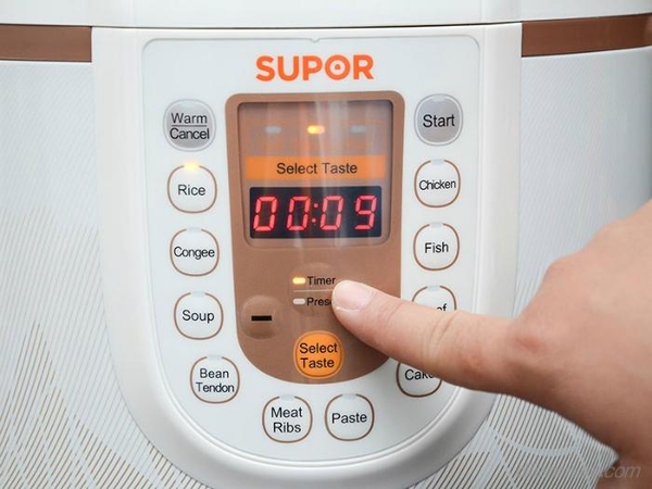 Sau khi cho thực phẩm vào Nồi Áp Suất và cắm nguồn điện, người dùng cài đặt thời gian bằng cách nhấn nút hẹn giờ nấu, chỉnh thời gian mà bạn mong muốn, sau đó chọn chế độ nấu cho nồi. Nồi Áp Suất sẽ tự động bắt đầu nấu sau thời gian chờ, theo chế độ nấu đã được cài đặt sẵn, hết thời gian nấu, nồi sẽ tự động chuyển sang chế độ giữ ấm.