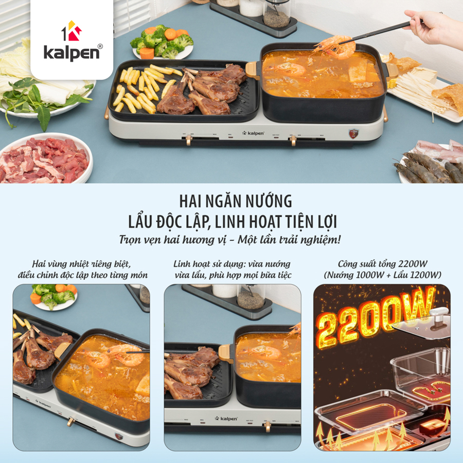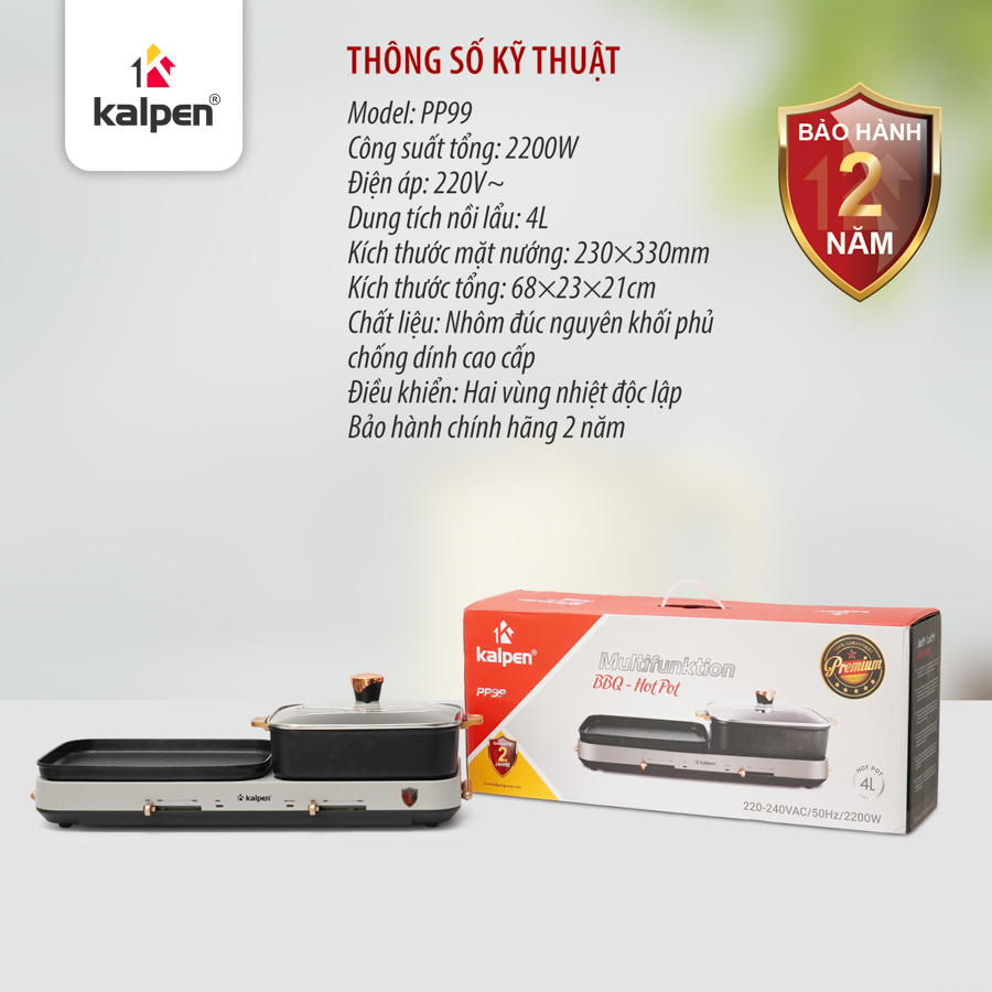 Bếp lẩu nướng hai khay tháo rời Kalpen PP99 4L