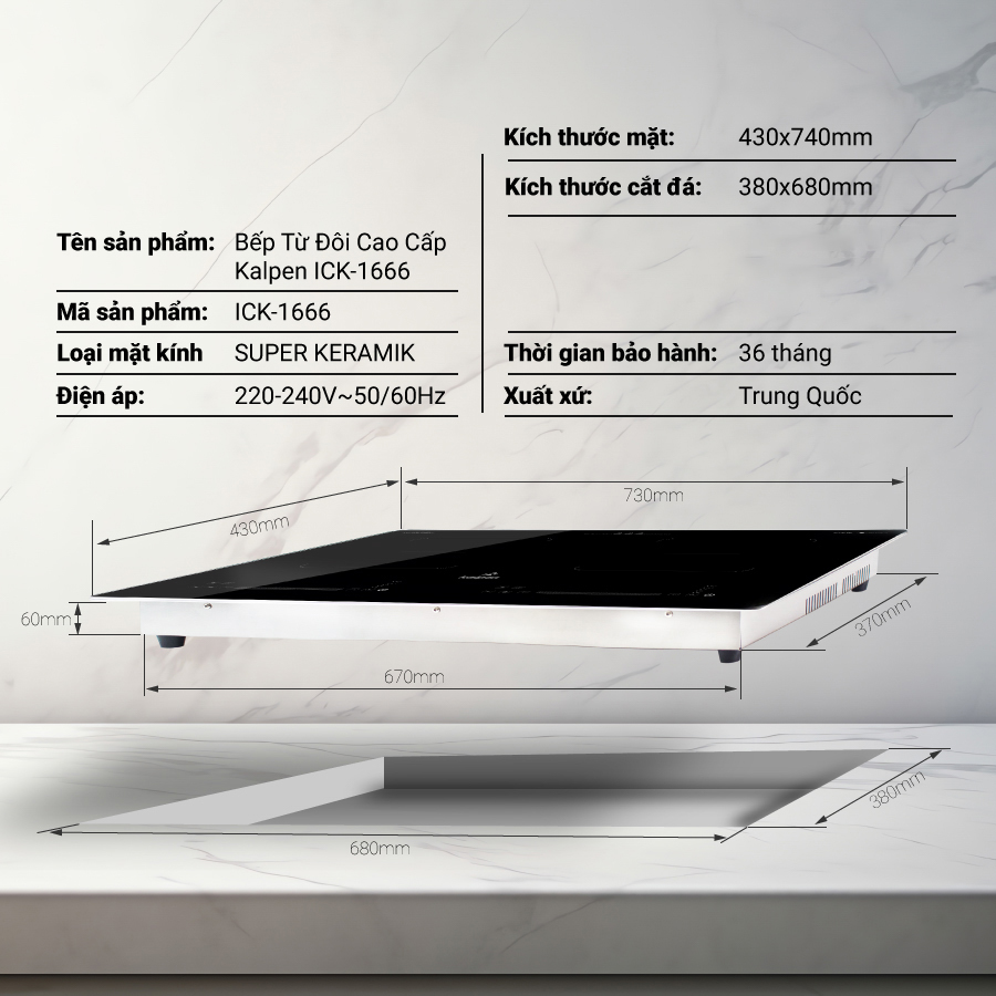 Mặt kính bếp từ đôi Kalpen ICK-1666 được làm theo tiêu chuẩn Easy Clean giúp bếp dễ dàng vệ sinh là một điểm nổi bật của bếp từ đôi Kalpen. Với bề mặt bếp phẳng làm từ kính ceramic chịu nhiệt và chống trầy xước, việc lau chùi trở nên nhanh chóng và đơn giản hơn bao giờ hết.