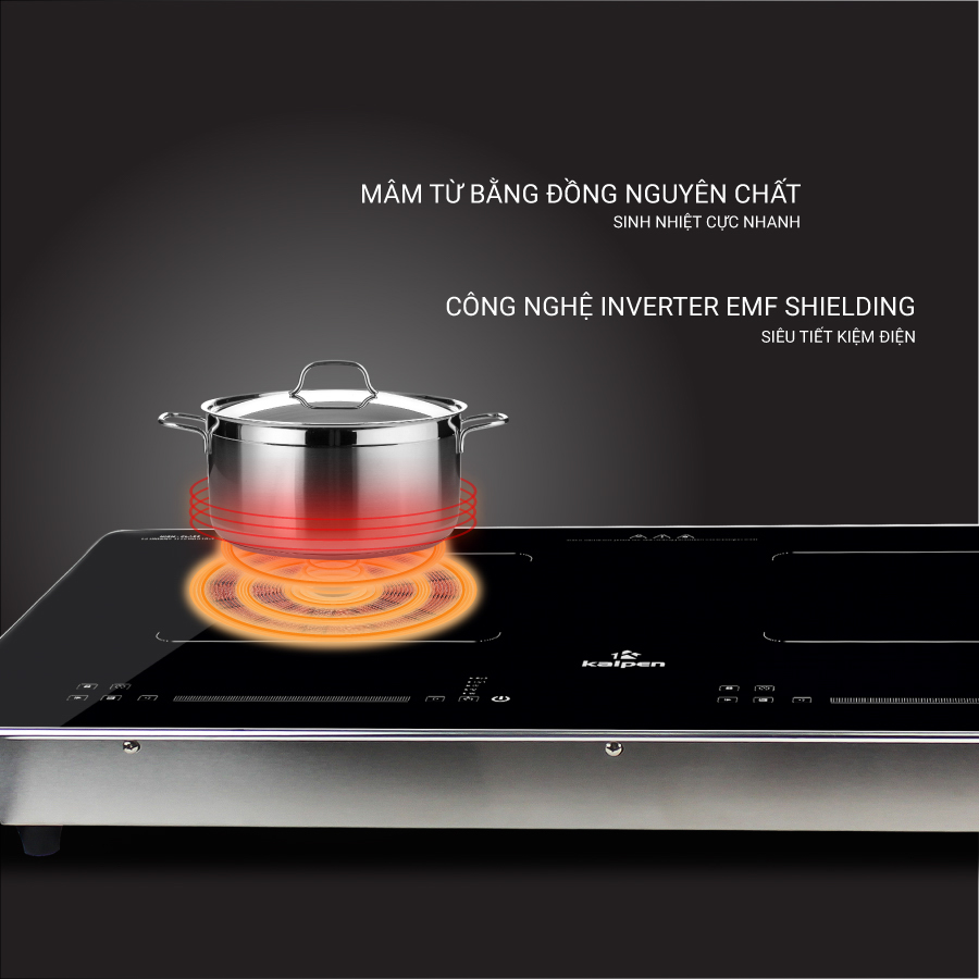 Inverter EMF Shielding là công nghệ thông minh giúp giảm lượng điện tiêu thụ của bếp từ. Công nghệ này điều chỉnh mức công suất phù hợp để không làm tiêu thụ nhiều điện năng, tối ưu hóa hiệu quả sử dụng năng lượng và đảm bảo bếp hoạt động ổn định và bền bỉ.