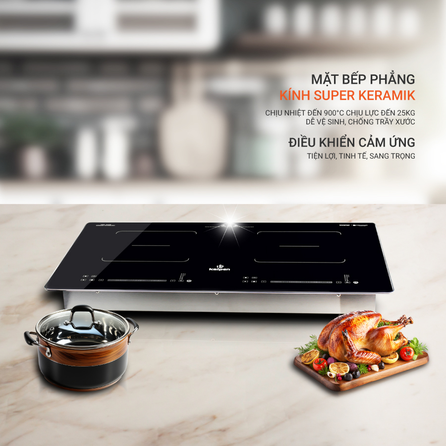 Bếp từ đôi Kalpen được trang bị bàn phím Touch Control (điều khiển cảm ứng) hiện đại, cho phép điều chỉnh nhiệt độ và công suất nấu một cách nhanh chóng và chính xác. Bảng điều khiển cảm ứng mang lại trải nghiệm sử dụng tiện lợi và dễ dàng.