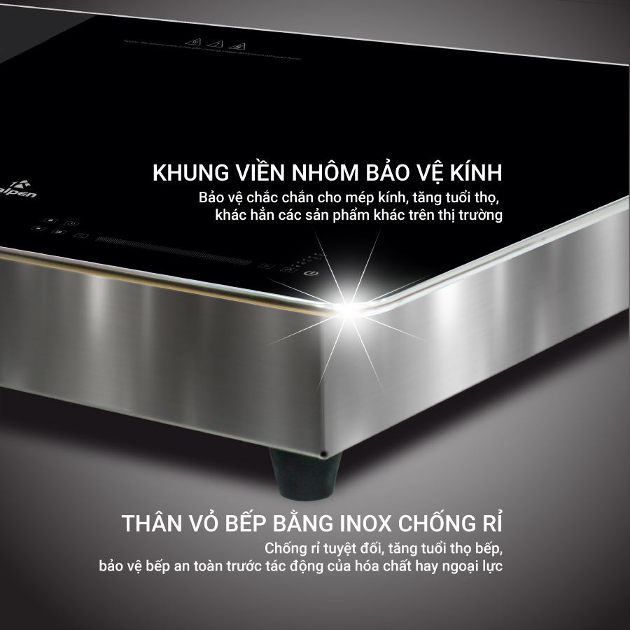 Mặt kính của bếp từ đôi được sản xuất theo công nghệ SUPER KERAMIK (Công nghệ mặt kính SUPER KERAMIK) chất lượng cao. Với viền nhôm bao quanh và kính ceramic cường lực, mặt kính này chịu được nhiệt độ lớn từ 700-900 độ C, chịu lực va đập mạnh và chịu tải tốt khi đun nấu ở nhiệt độ cao.