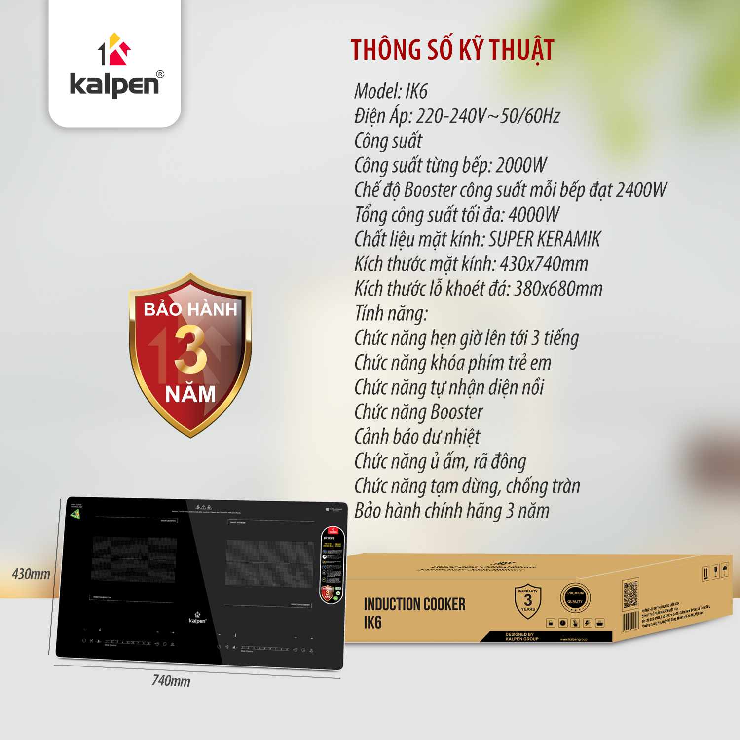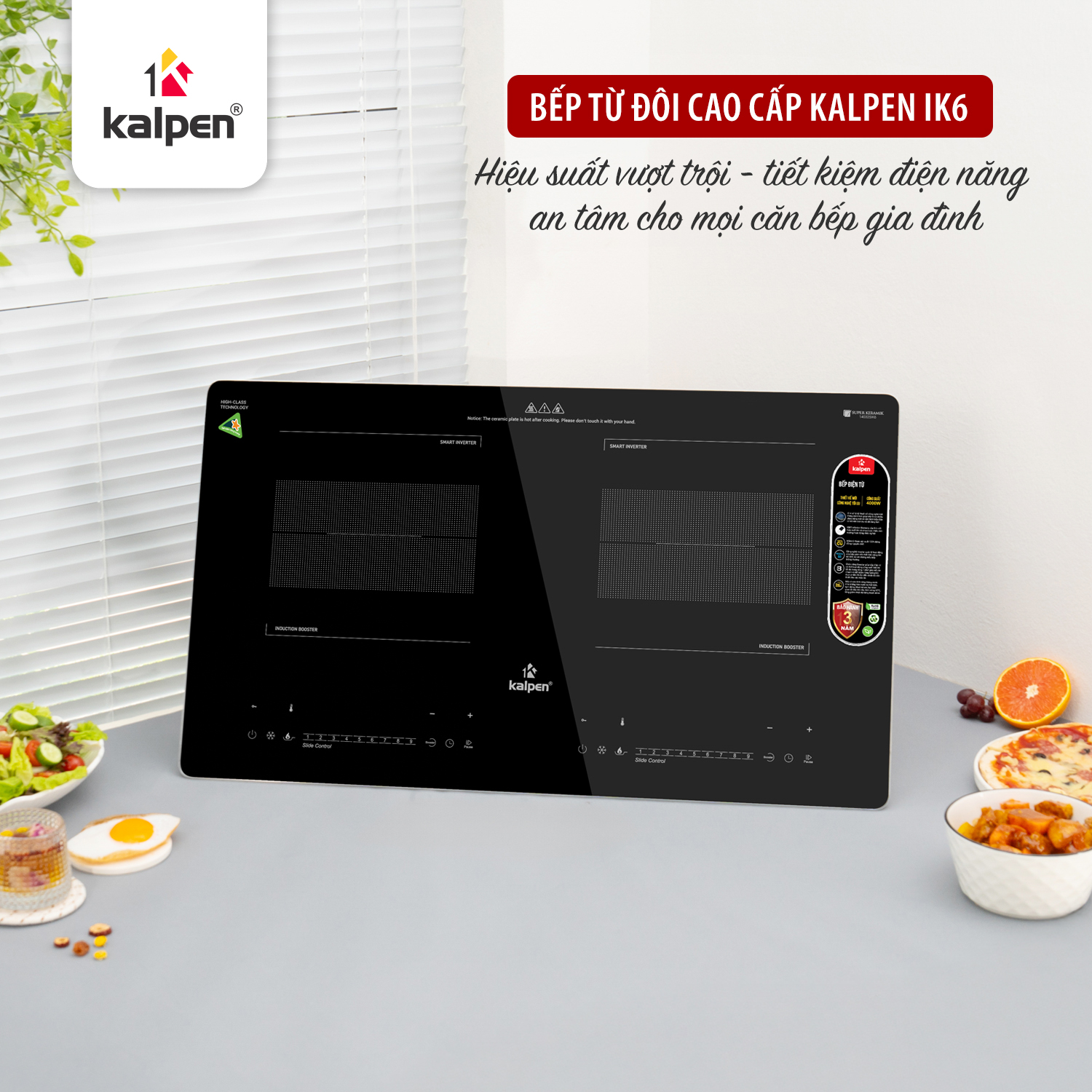 Video giới thiệu bếp từ đôi Kalpen IK6 4000 W kính viền nhôm