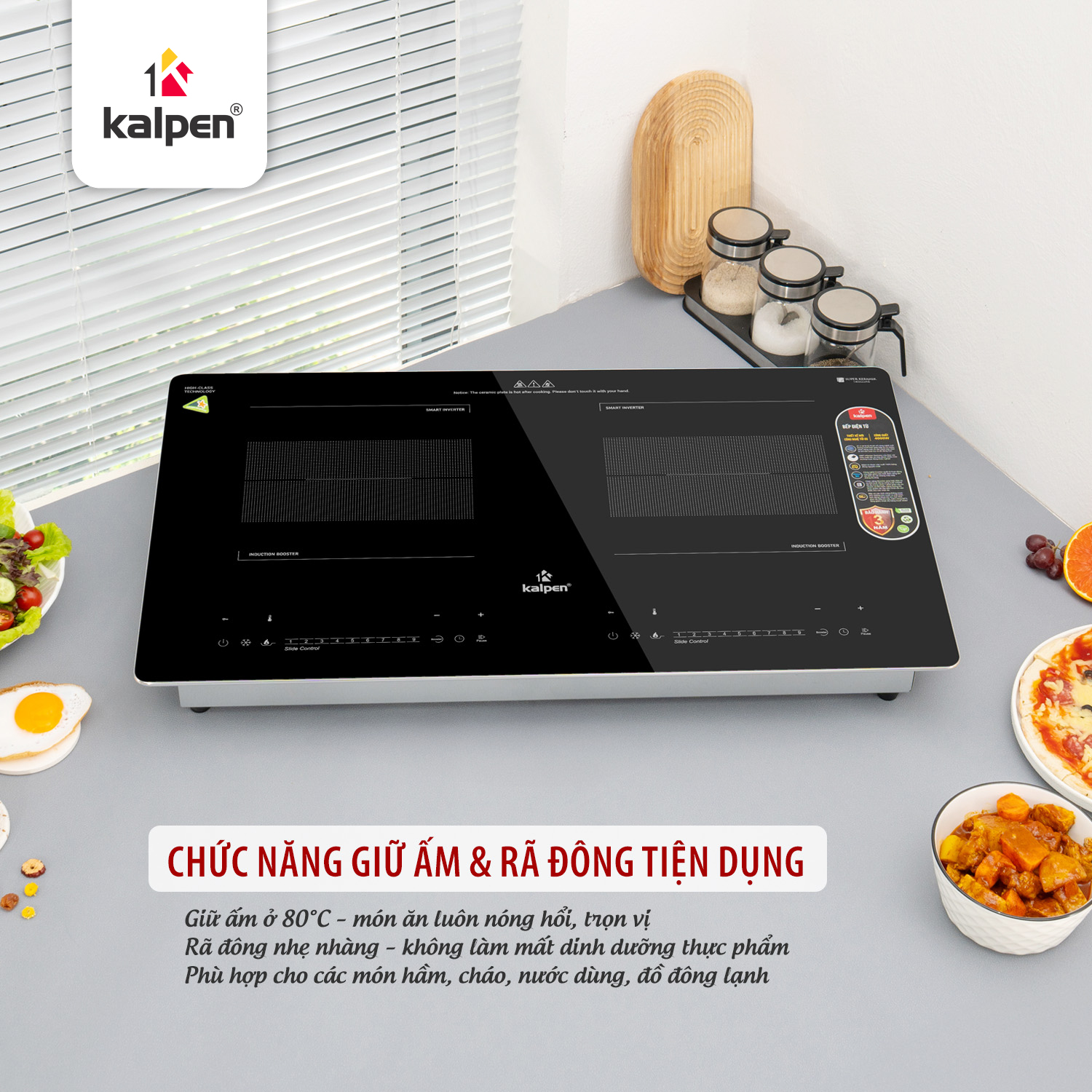 Phát cảnh báo khi mặt kính của bếp quá nóng, giúp giảm rủi ro và tăng tuổi thọ cho bếp.