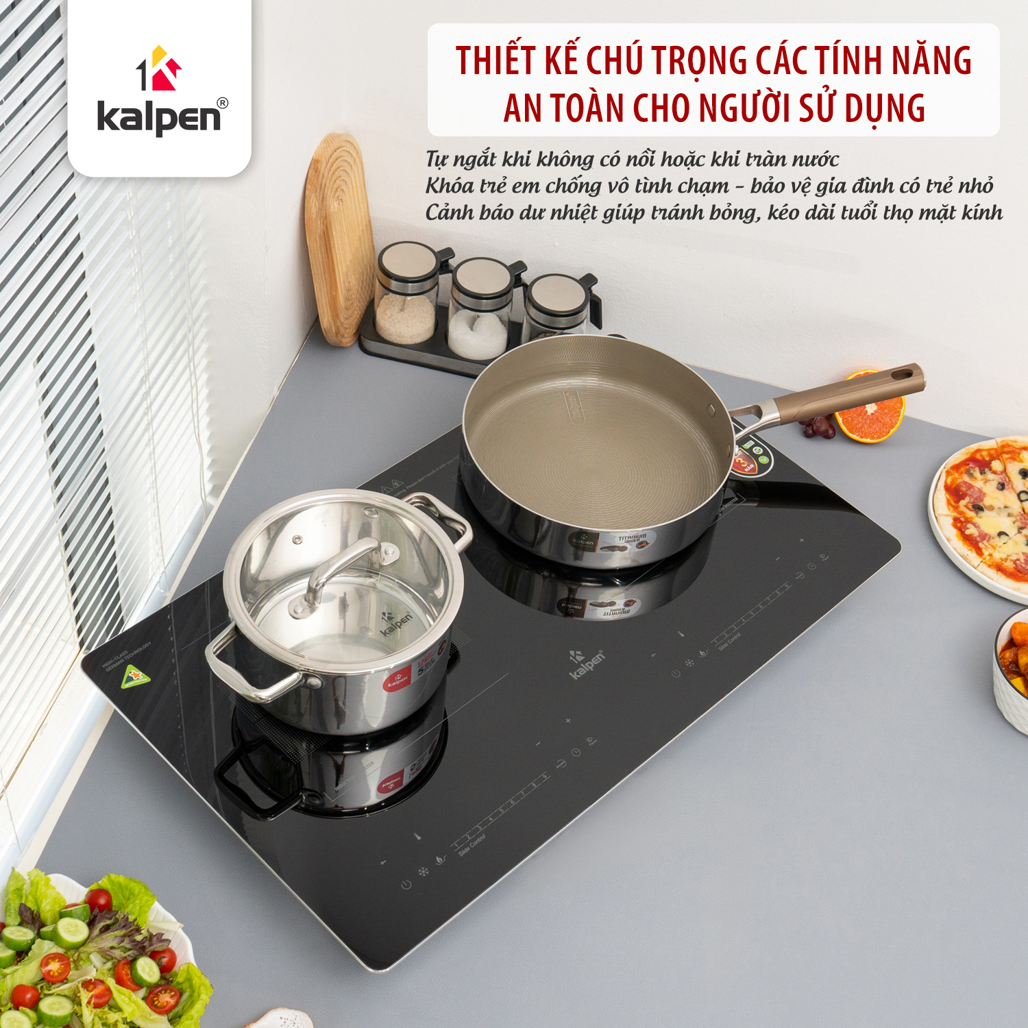 Tự động phát hiện và tắt bếp hoặc phát cảnh báo khi có sự cố tràn nước hoặc thực phẩm.