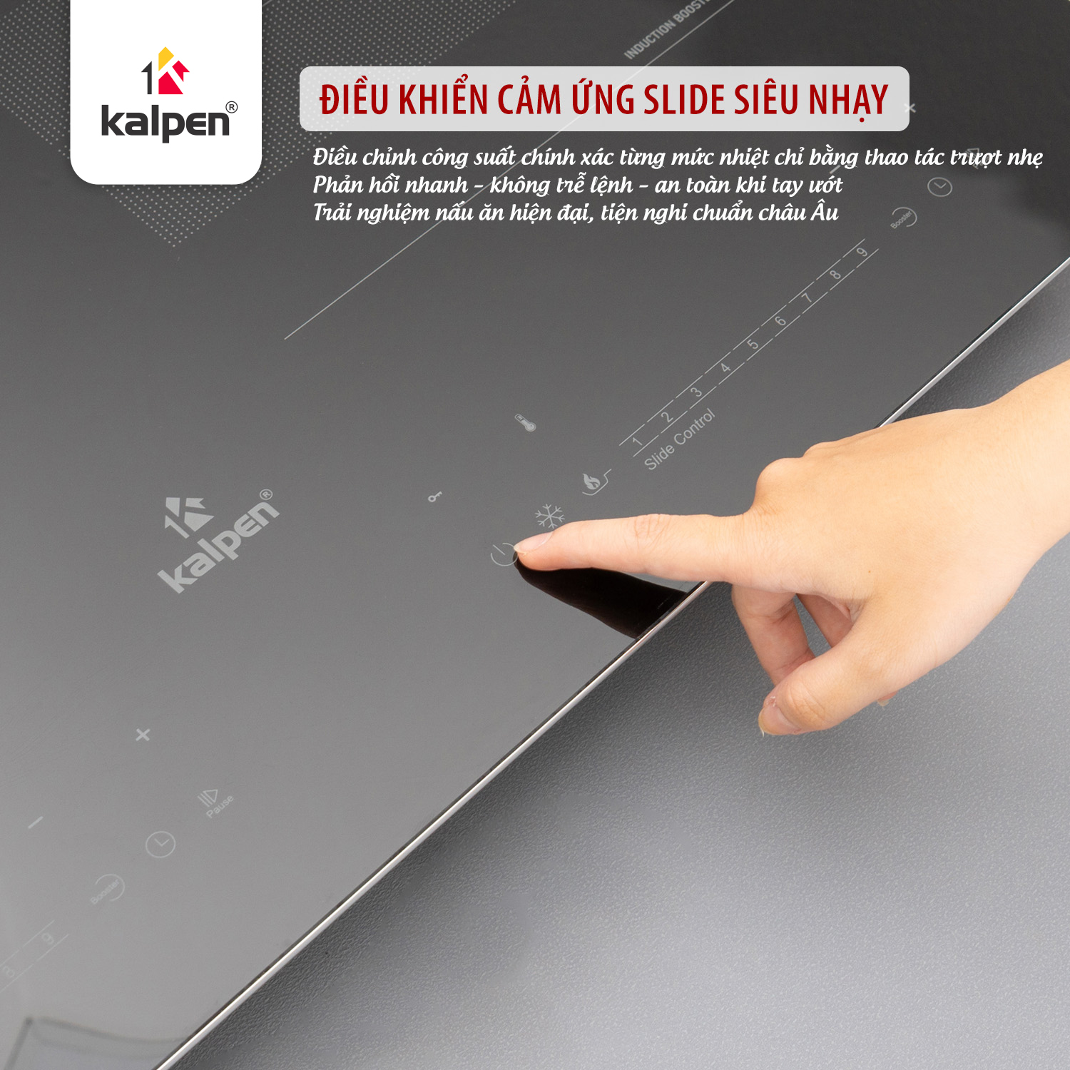 Thao tác trượt đơn giản giúp kiểm soát mức năng lượng và nhiệt độ linh hoạt, mang lại trải nghiệm sử dụng mượt mà và dễ dàng.