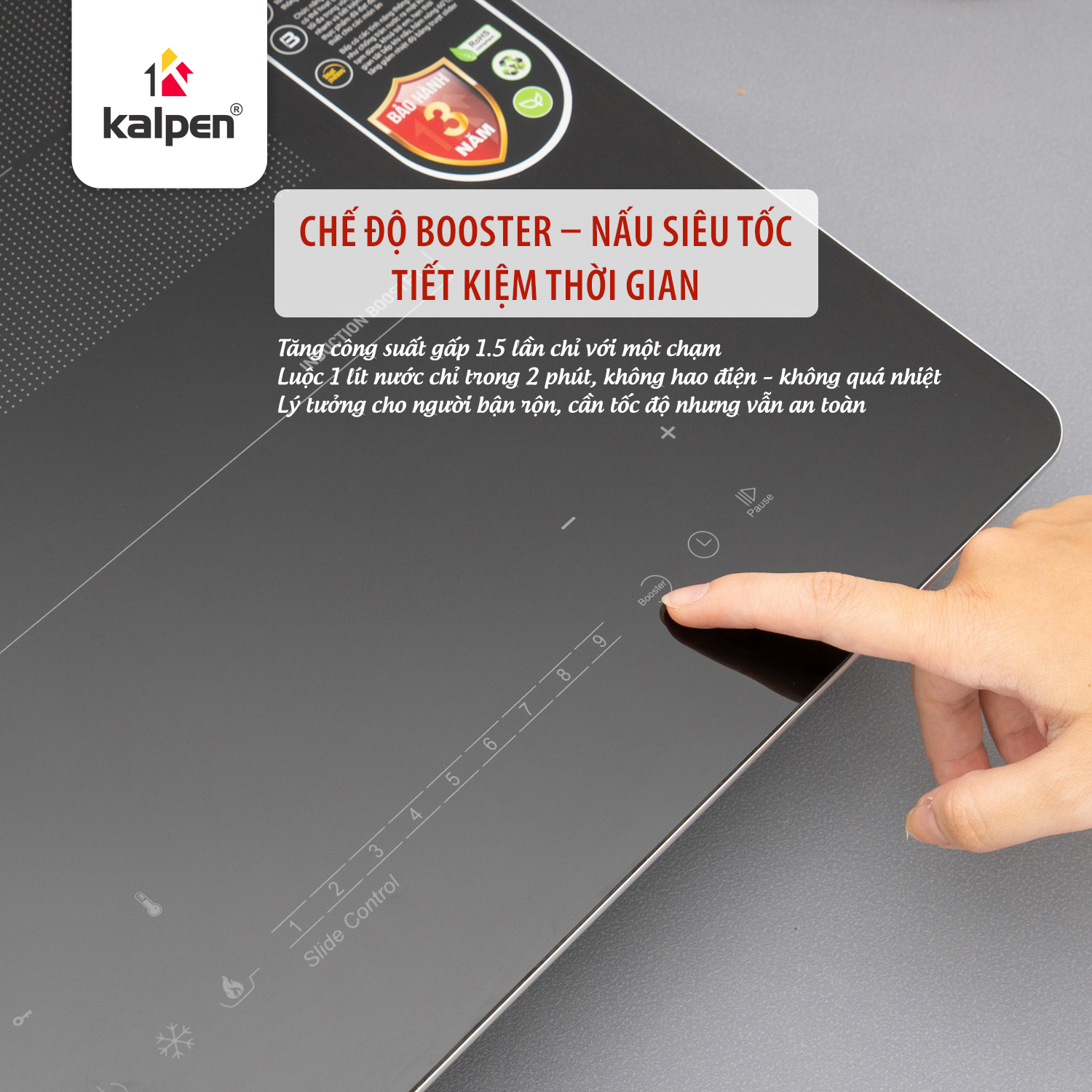 Rút ngắn thời gian nấu với chế độ Booster tăng công suất gấp 1.5 lần so với chế độ thông thường.