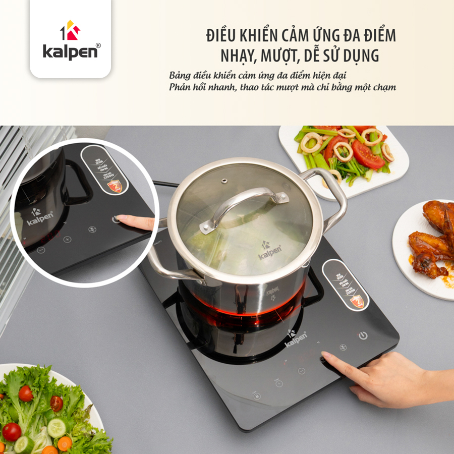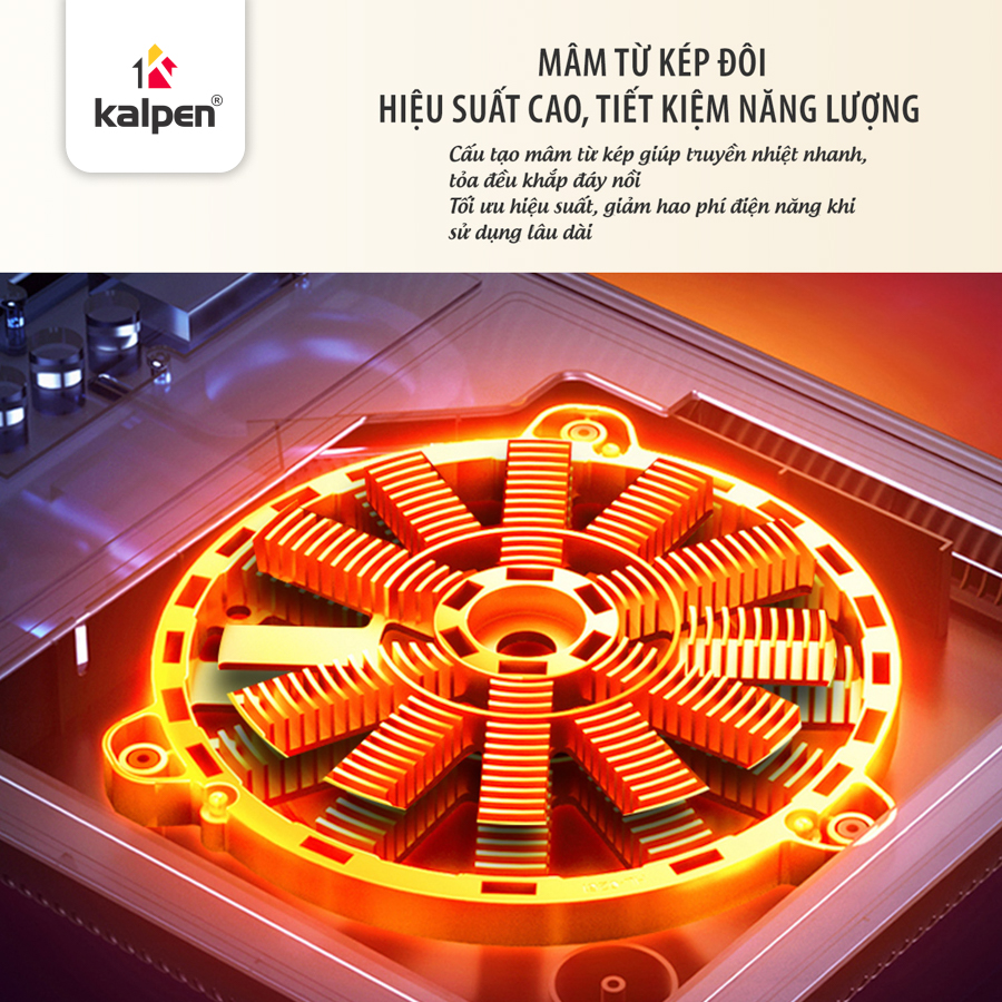 Bếp được trang bị mâm từ có cấu tạo kép đôi, giúp tối ưu khả năng bắt từ, gia nhiệt nhanh và ổn định. Nhờ đó, hiệu suất nấu ăn đạt mức cao trong khi vẫn tiết kiệm điện năng hiệu quả.