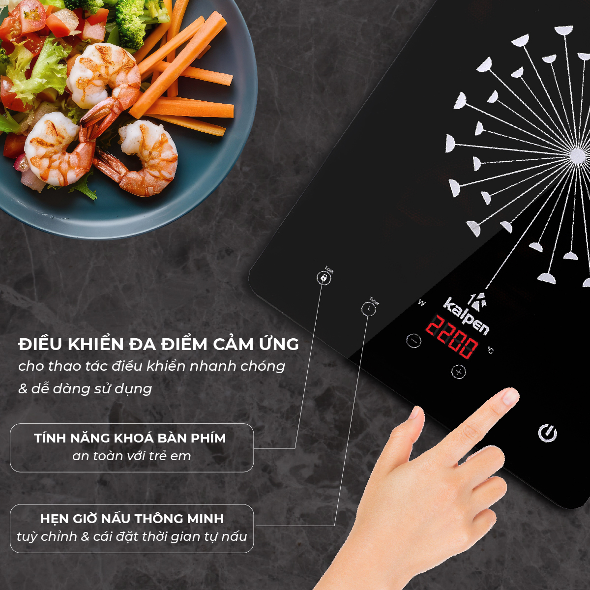 Cấu tạo kép đôi của bếp từ đơn Kalpen IK1 giúp cho cho hiệu suất nấu nướng đạt ở mức tối đa, tiết kiệm điện năng tiêu thị và rút ngắn thời gian vào bếp.