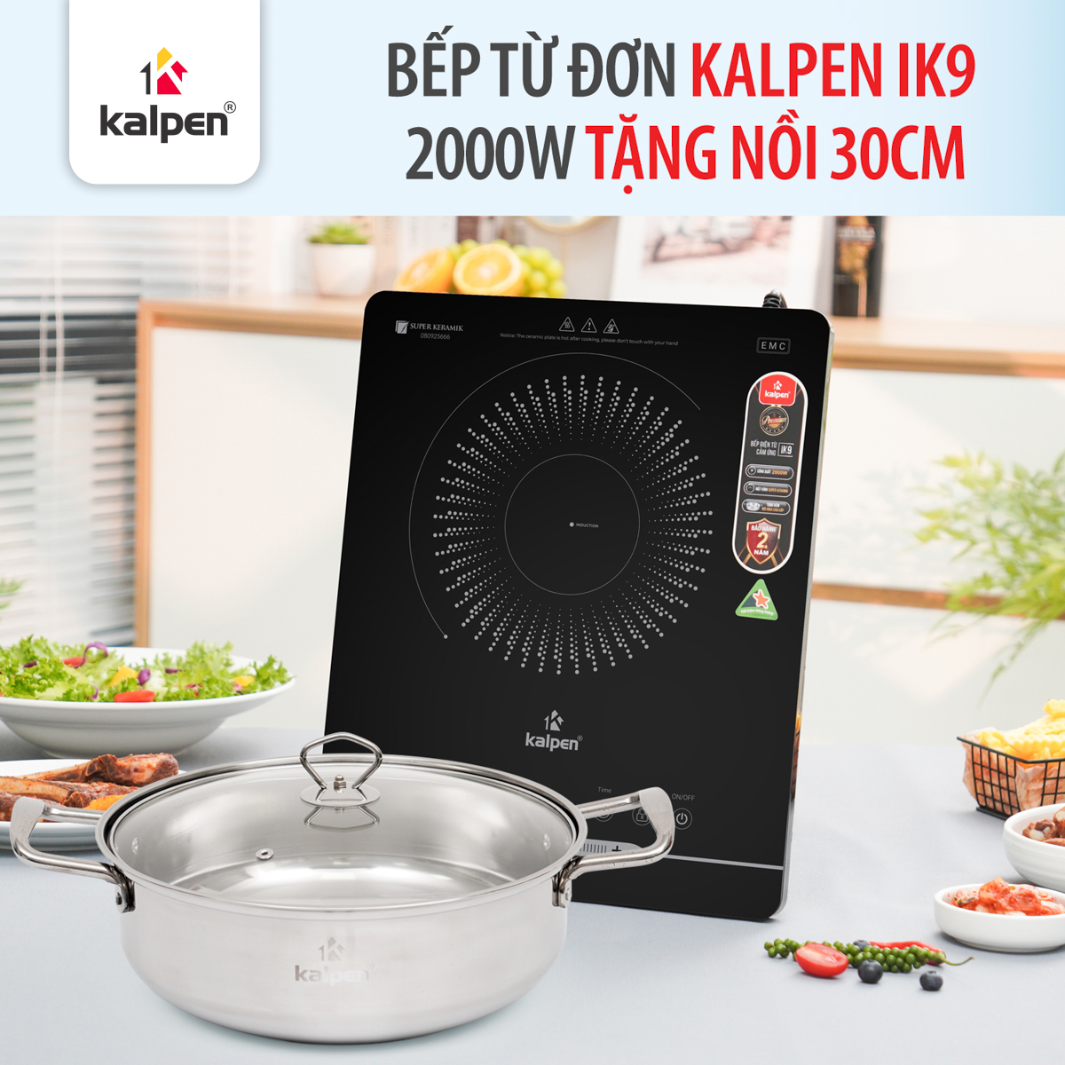 Video giới thiệu bếp từ đơn Kalpen IK9 2000 W tặng nồi 30 cm