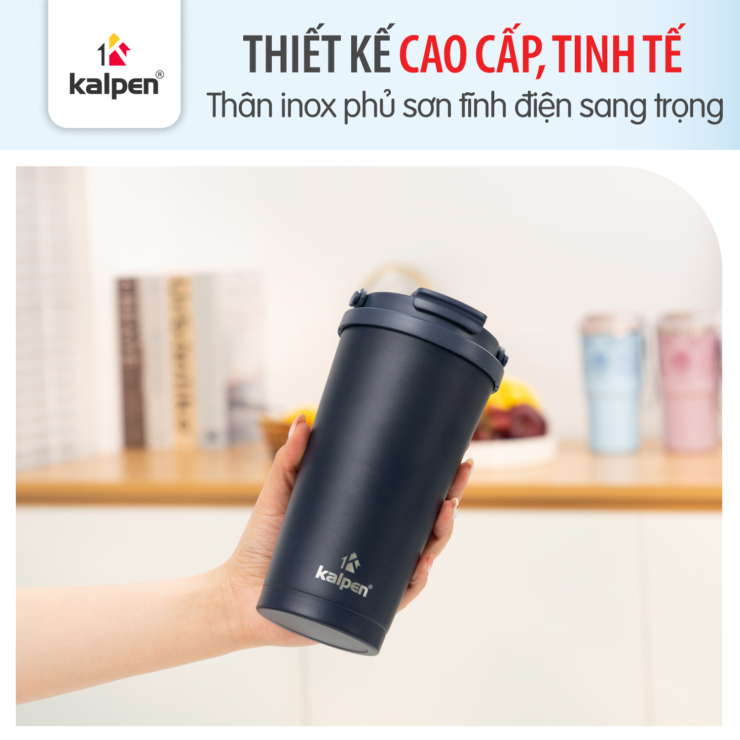 Cốc giữ nhiệt Kalpen AR32 được thiết kế hiện đại với nhiều chi tiết tiện lợi, giúp người dùng dễ dàng sử dụng trong nhiều tình huống khác nhau.