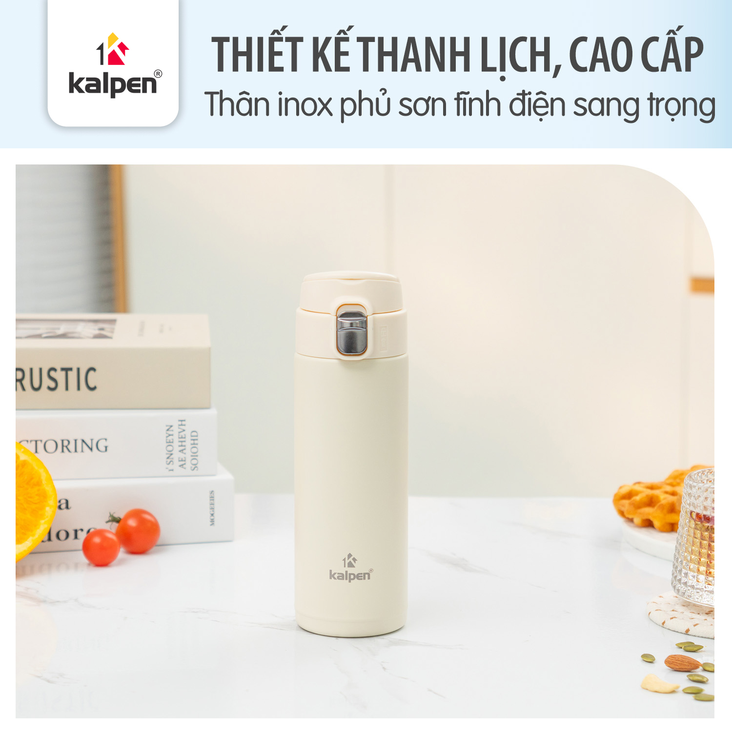 Bình giữ nhiệt Kalpen AR33W sở hữu gam màu trắng kem trang nhã, mang phong cách nhẹ nhàng và hiện đại. Bề mặt sơn tĩnh điện cao cấp giúp màu sắc bền đẹp, hạn chế trầy xước và dễ vệ sinh. Nhờ thiết kế tinh tế cùng hộp đóng gói chắc chắn, sản phẩm còn phù hợp làm quà tặng cho bạn bè, đồng nghiệp, đối tác hoặc khách hàng trong nhiều dịp khác nhau.