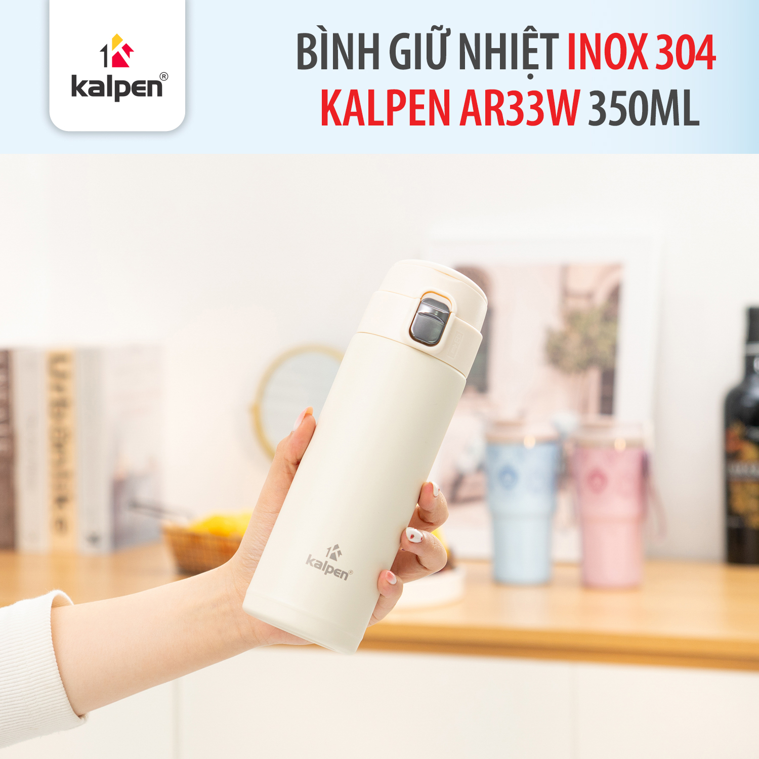 Bình giữ nhiệt Kalpen AR33W sở hữu thiết kế thon gọn cùng nhiều chi tiết tiện lợi, giúp việc sử dụng trở nên dễ dàng và linh hoạt hơn.