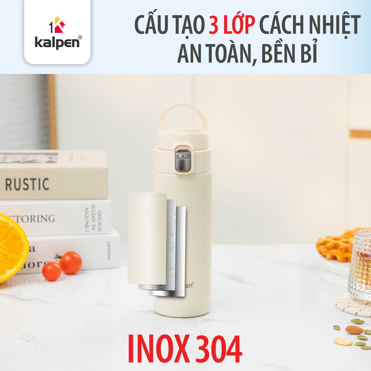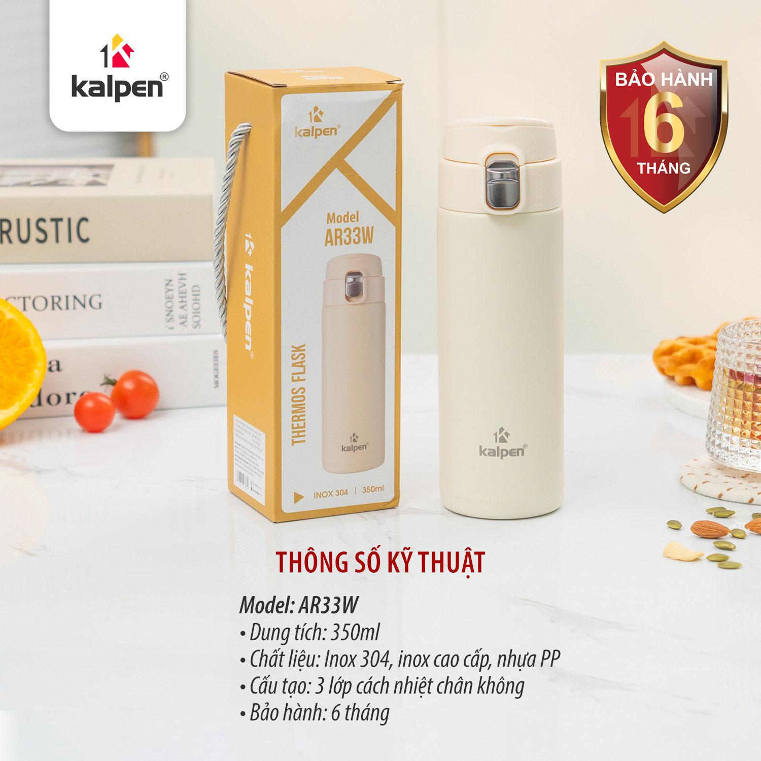 Bình giữ nhiệt Kalpen AR33W được thiết kế với cấu tạo 3 lớp bền bỉ nhằm tối ưu hiệu suất sử dụng.