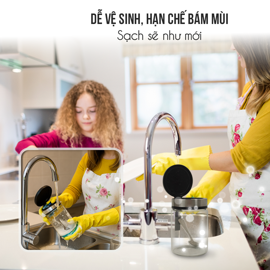 Thủy tinh chống bám bẩn: Dễ dàng lau chùi sau mỗi lần sử dụng, hạn chế tối đa việc để lại cặn gia vị