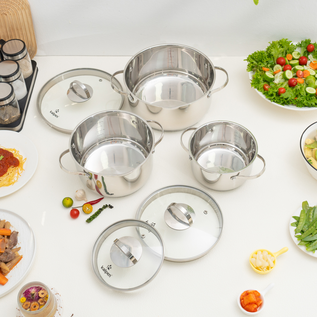Bộ nồi inox Kalpen Lermat L1Pro gồm 3 kích thước tiêu chuẩn: 16cm, 20cm và 24cm, dễ dàng đáp ứng từ các món ăn đơn giản như nấu cháo, luộc rau cho đến những món cần dung tích lớn như hầm xương, nấu lẩu hay luộc gà nguyên con. Thiết kế chuẩn mực, tiện lợi giúp người nội trợ tiết kiệm thời gian và nhiên liệu mà vẫn đảm bảo món ăn thơm ngon, giữ trọn dinh dưỡng.