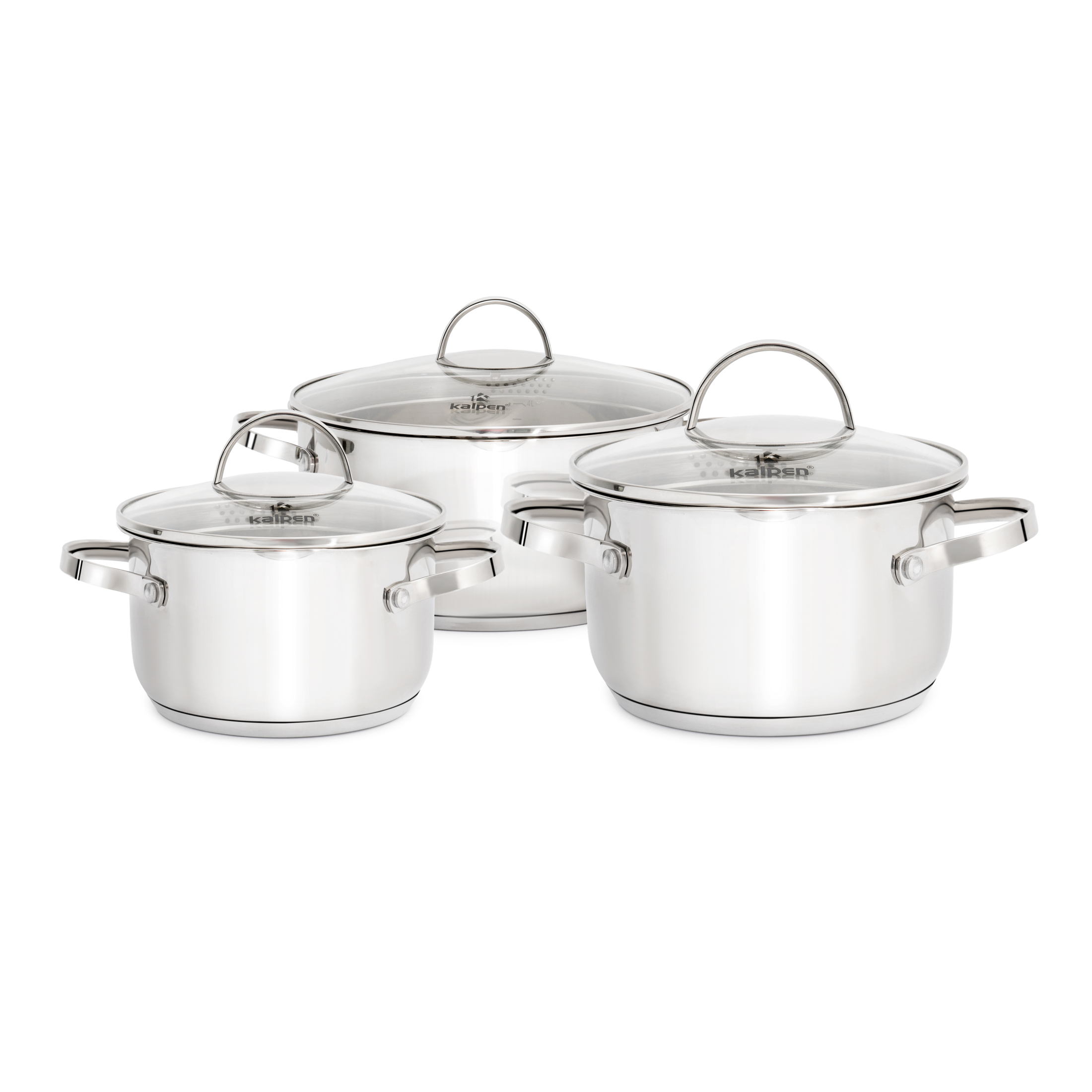 Bộ 3 nồi Inox 5 lớp đáy Kalpen Lermat L1Pro gồm 3 nồi được tính toán kỹ lưỡng về chiều cao và đường kính, đảm bảo dung tích tối đa trong diện tích tối thiểu, không chiếm quá nhiều không gian bếp mà vẫn đáp ứng được tối đa cho từng nhu cầu sử dụng: