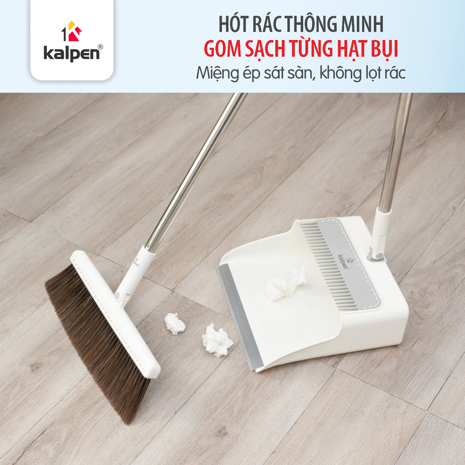 Chổi và hót rác có thể gắn cố định bằng khớp khóa chắc chắn, giúp bộ sản phẩm luôn gọn gàng, ngăn nắp và mang lại cảm giác sạch sẽ, thẩm mỹ cho không gian sống.