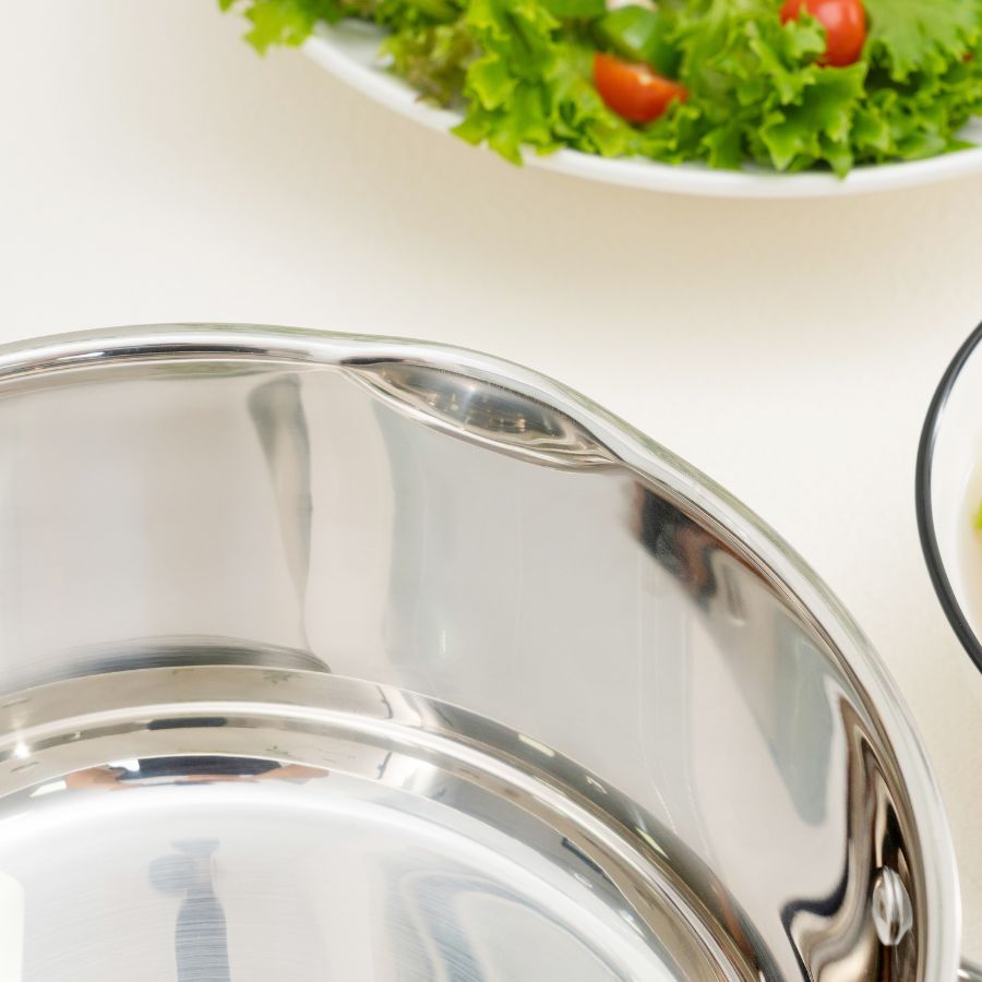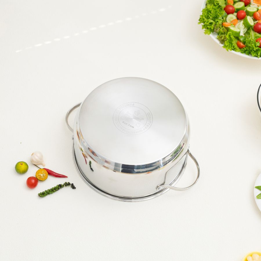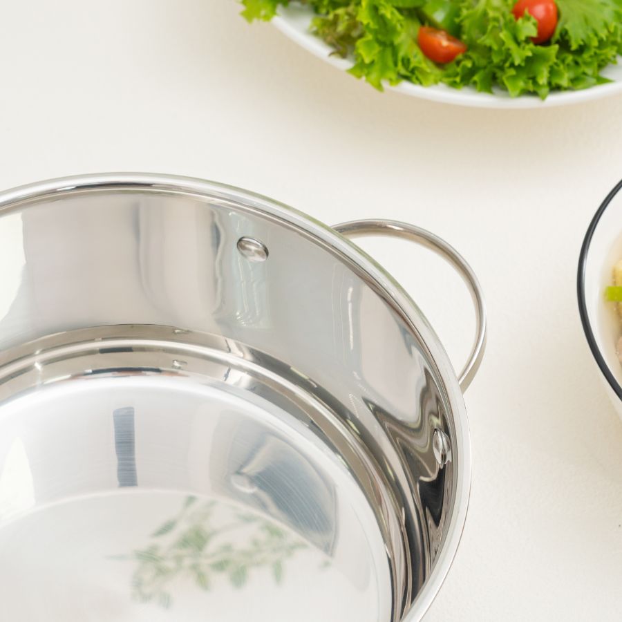 Ngoài ra, bề mặt inox trơn nhẵn giúp việc vệ sinh sau khi nấu trở nên dễ dàng hơn bao giờ hết. Chỉ cần rửa nhẹ bằng nước ấm và dung dịch tẩy rửa dịu nhẹ, nồi lại sạch bong sáng bóng như mới.