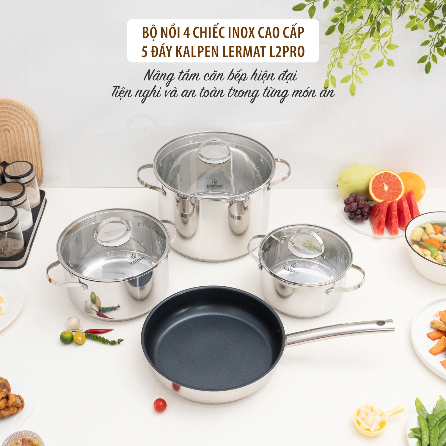 Trong thời đại mà sức khỏe gia đình và sự tiện lợi trong nấu nướng được đặt lên hàng đầu, việc lựa chọn một bộ nồi bền bỉ, an toàn, đa năng trở thành ưu tiên của mọi bà nội trợ. Với thiết kế tinh tế, chất liệu cao cấp và công nghệ đáy 5 lớp vượt trội, bộ nồi 4 chiếc inox Kalpen Lermat L2Pro chính là sự lựa chọn hoàn hảo cho căn bếp hiện đại. Sản phẩm không chỉ đáp ứng nhu cầu nấu nướng đa dạng, mà còn góp phần nâng tầm không gian bếp nhờ vẻ ngoài sang trọng, sáng bóng như mới qua nhiều năm sử dụng.
