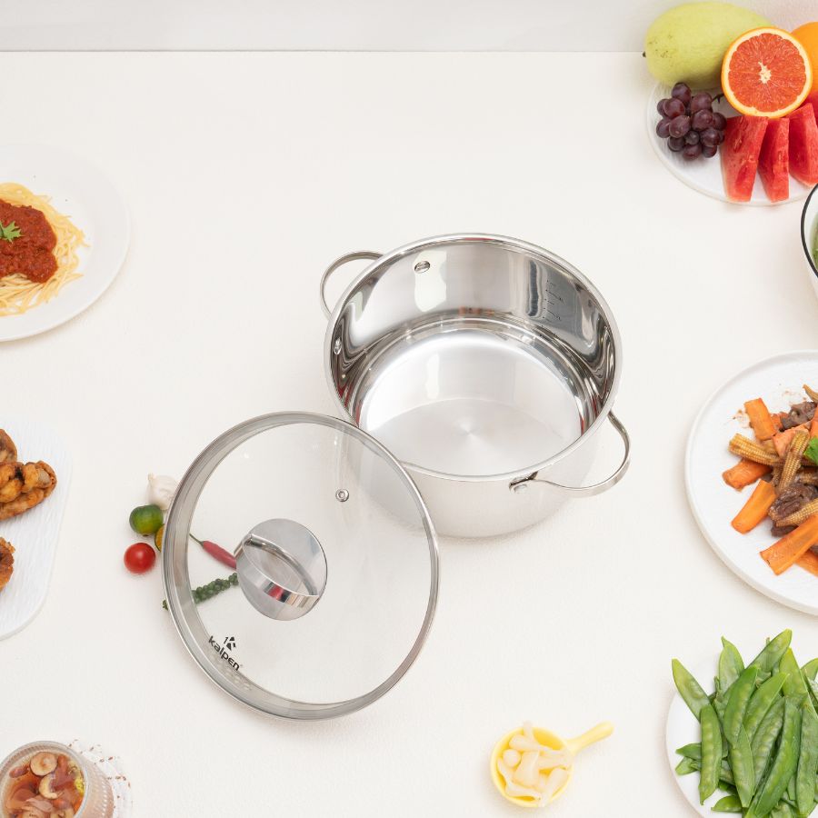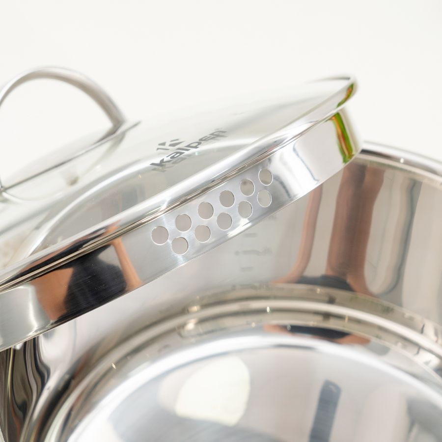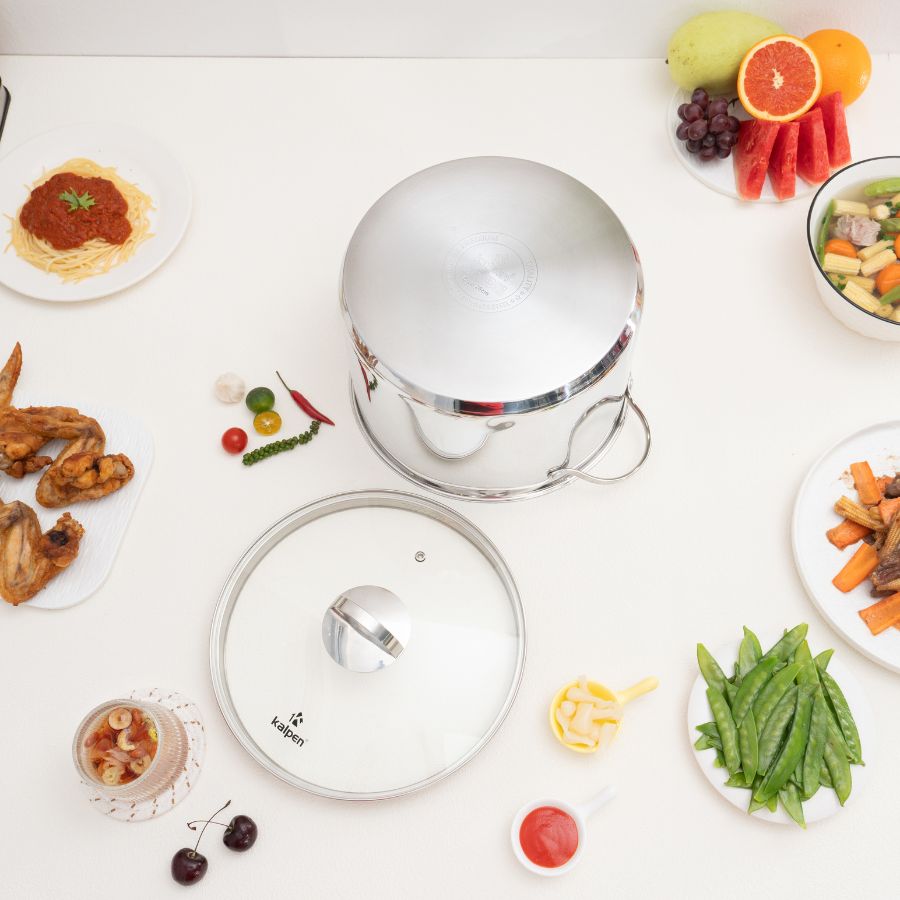 Sử dụng chất liệu cao cấp không chỉ mang lại tính thẩm mỹ cao mà còn giúp bộ nồi inox 5 đáy Kalpen bền bỉ với thời gian, chống trầy xước và chịu lực tốt trong môi trường nhiệt độ cao của căn bếp.