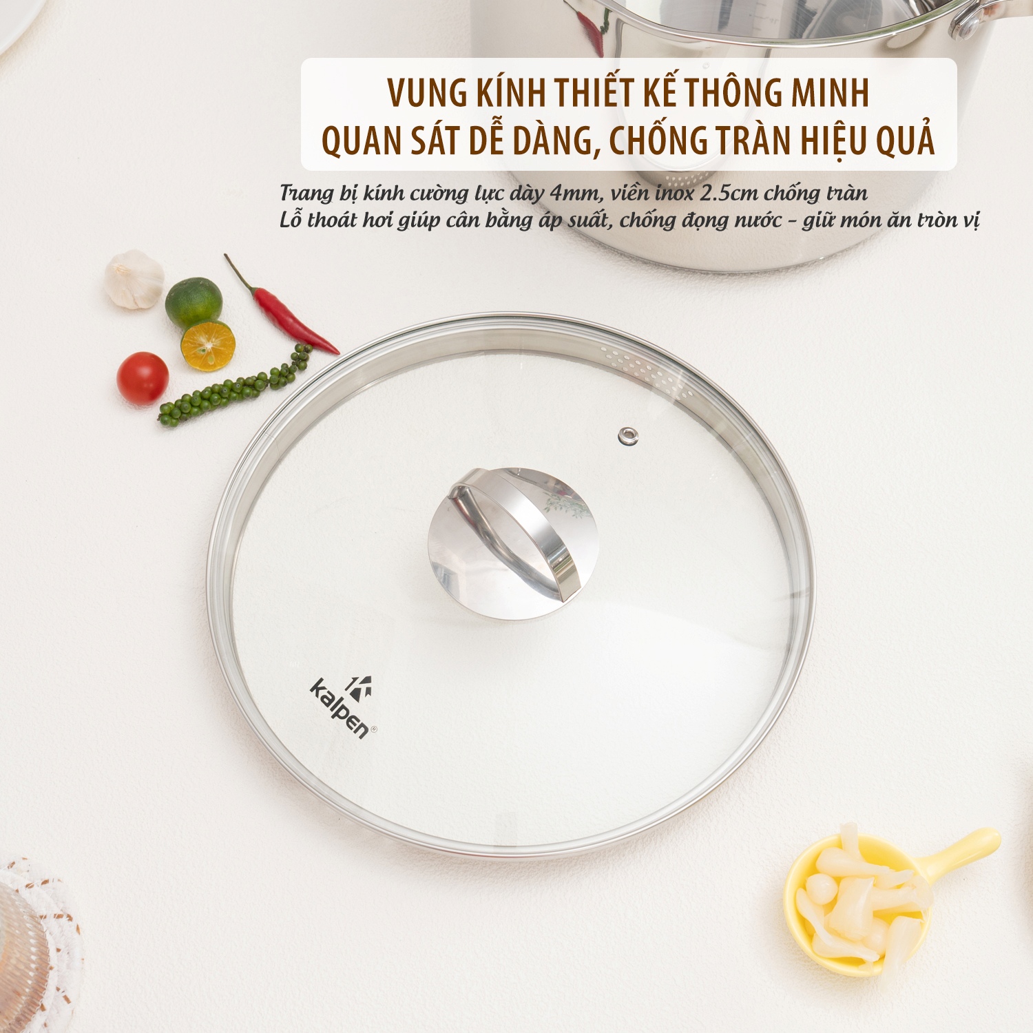 | Nồi 22cm | 22 x 12.5 cm | ~4.75 lít | Có | Inox cao cấp |