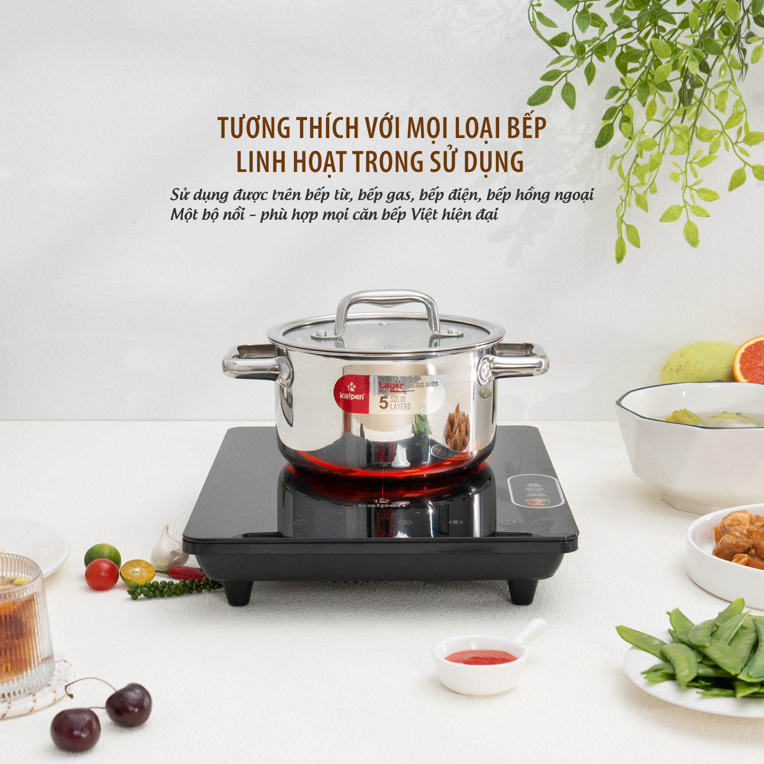 Bộ nồi Kalpen Lermat L2Pro tương thích hoàn hảo với tất cả các loại bếp hiện nay trên thị trường như bếp từ, bếp gas, bếp điện, bếp hồng ngoại.