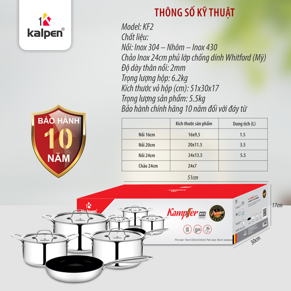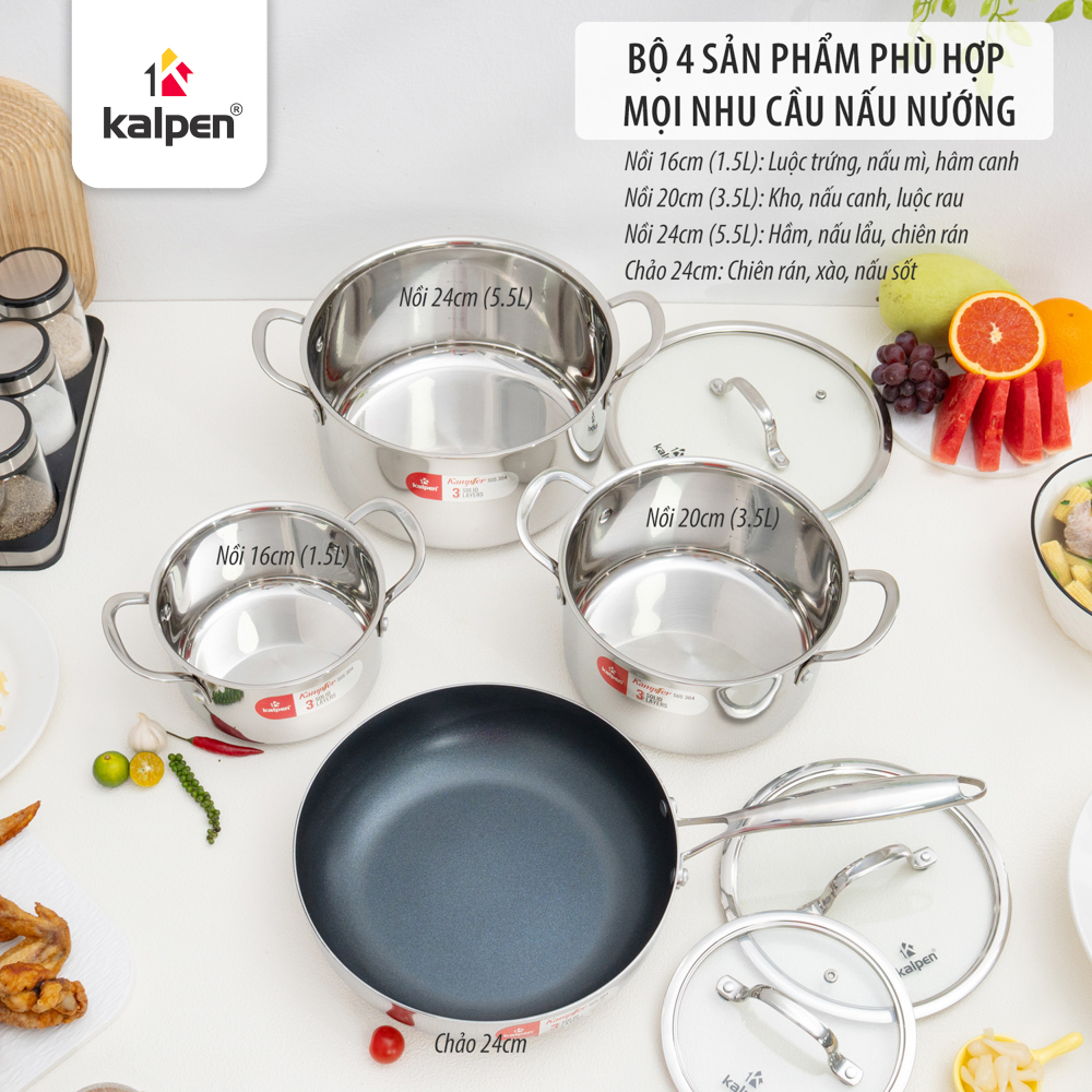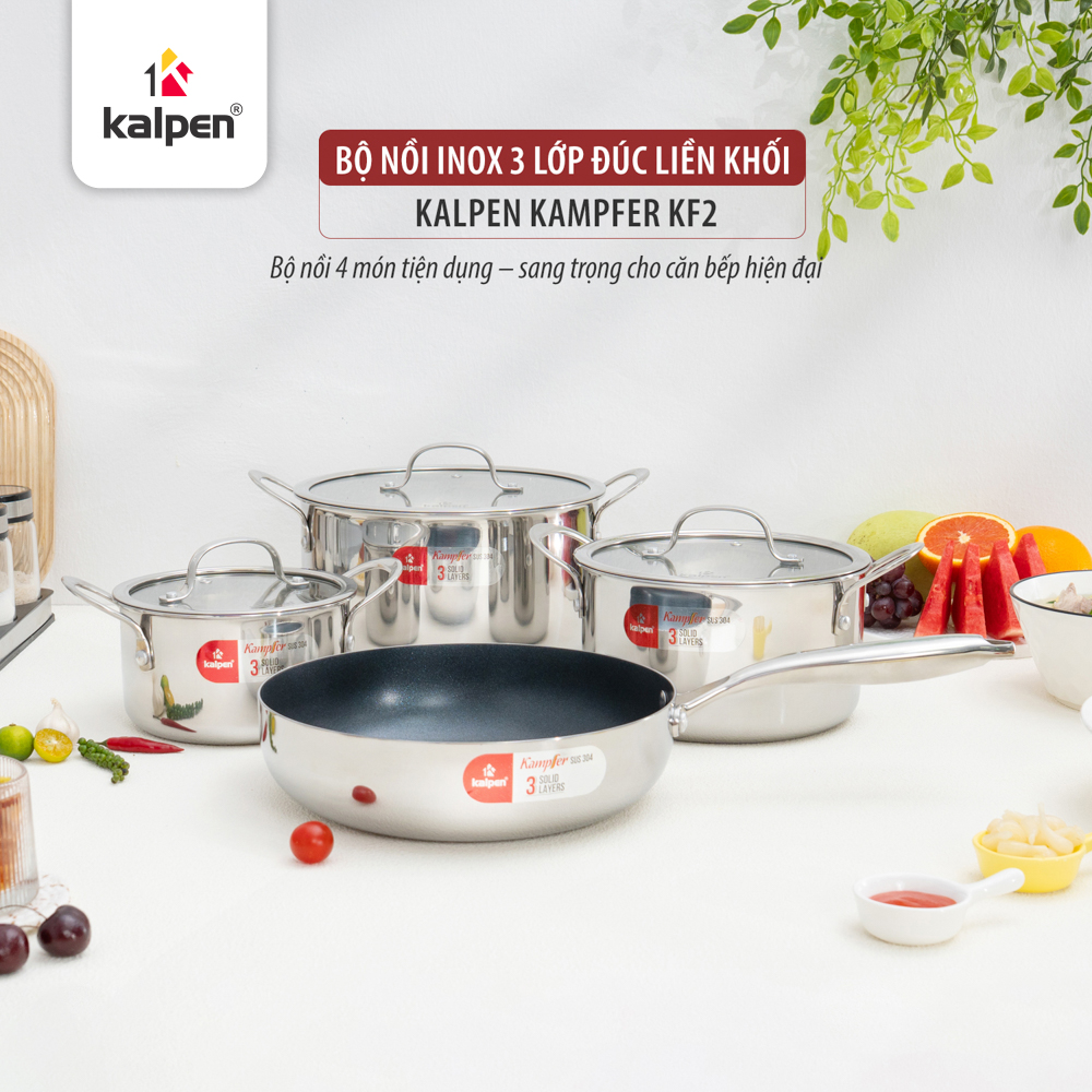 Video giới thiệu bộ nồi chảo 4 món Inox 304 liền khối Kalpen Kampfer KF2 16-20-24 chảo 26 cm