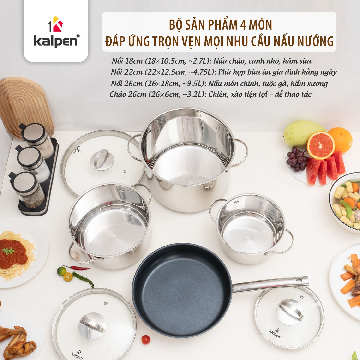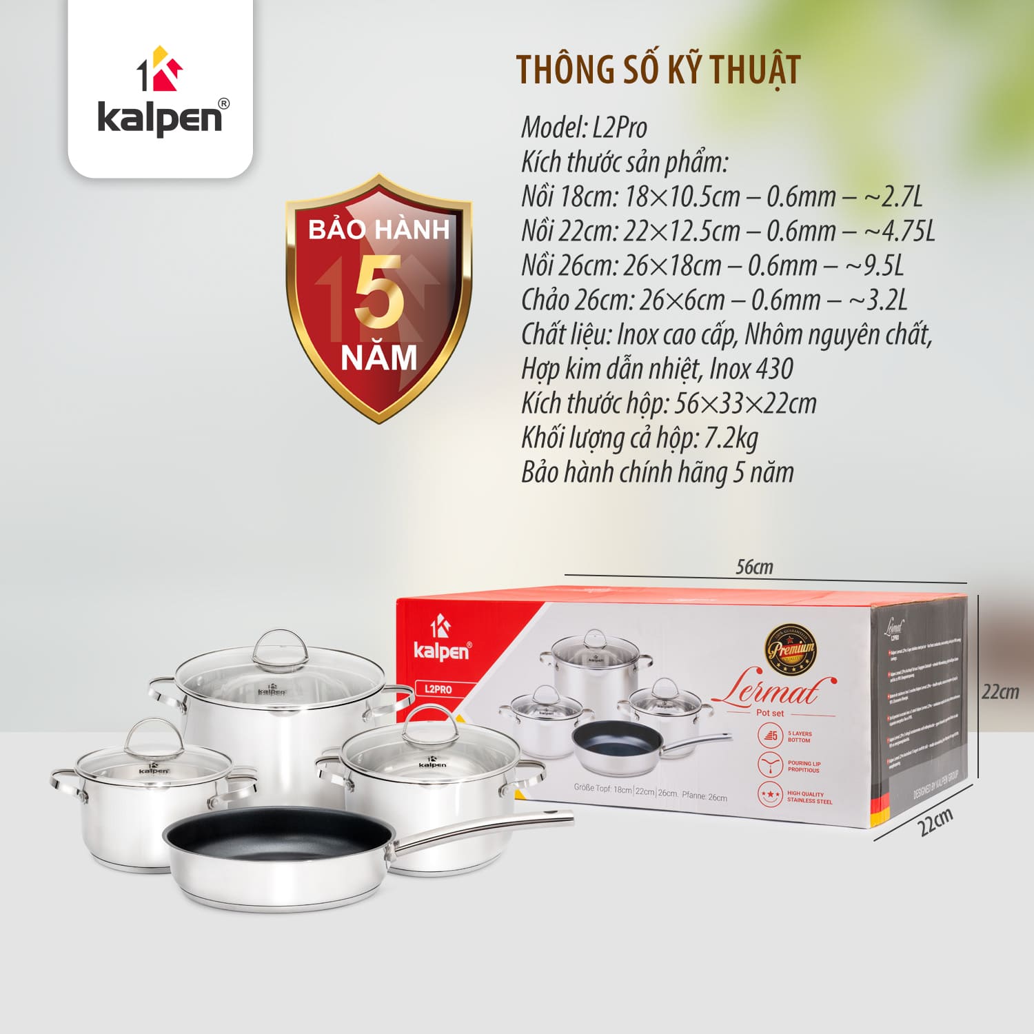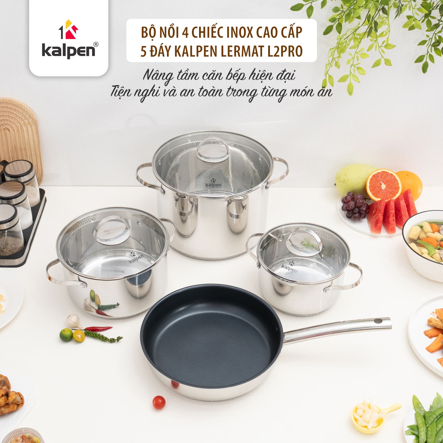 Video giới thiệu bộ nồi chảo 4 món Inox 5 lớp đáy Kalpen Lermat L2Pro 18-22-26 cm
