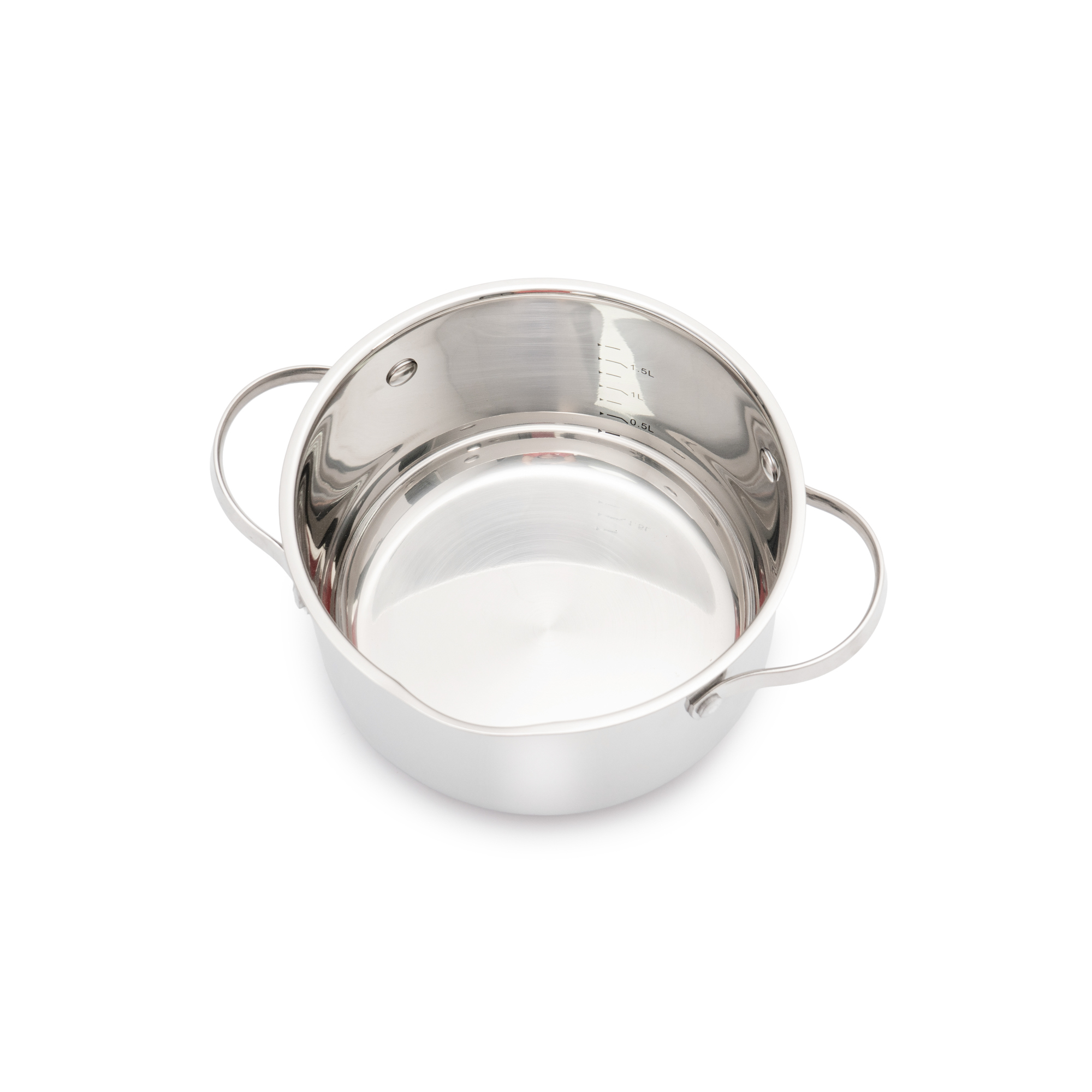 Lớp ngoài cùng là inox 430 bắt từ hiệu quả, giúp nồi tương thích với mọi loại bếp, đặc biệt là bếp từ hiện đại.