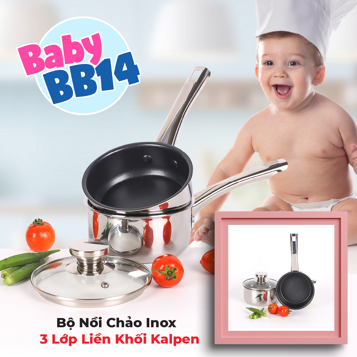 Kalpen Việt Nam giới thiệu tới các mẹ bộ sản phẩm nồi chảo inox 3 lớp liền khối Kalpen Baby BB14 cao cấp thiết kế dành riêng cho mẹ chế biến đồ ăn dặm, nấu cháo, chiên rán đồ ăn... cho các bé nhé!