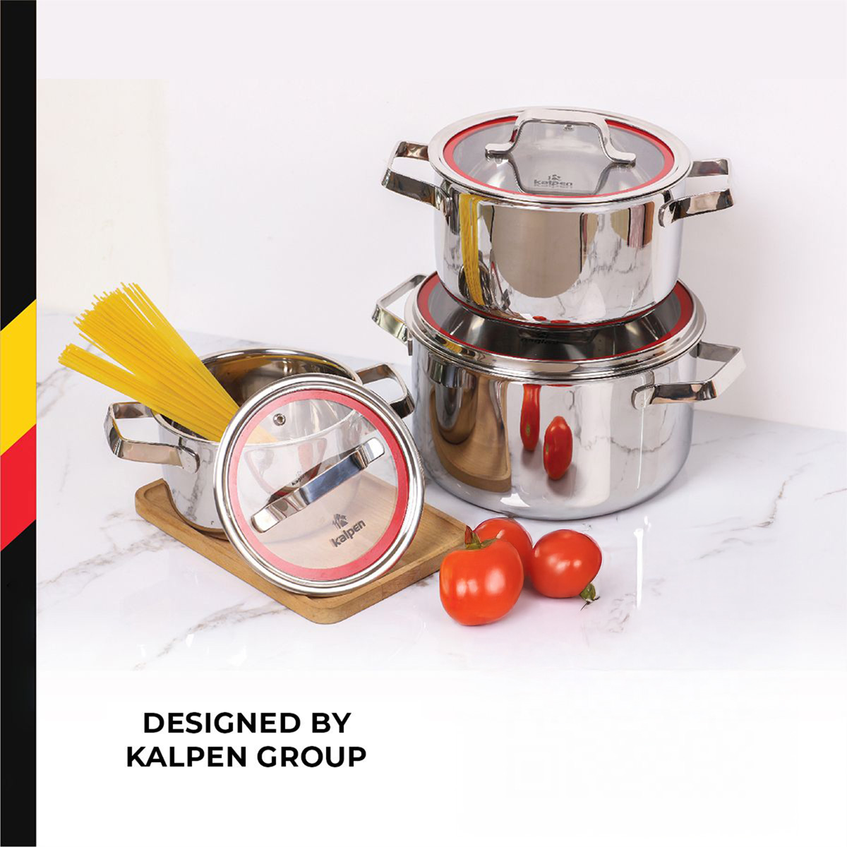 Bộ 3 nồi inox Kalpen Emer được thiết kế đẹp, màu sắc sáng bóng, hiện đại và sang trọng không chỉ phù hợp sử dụng trong gia đình mà còn rất thích hợp để làm quà tặng tân gia.