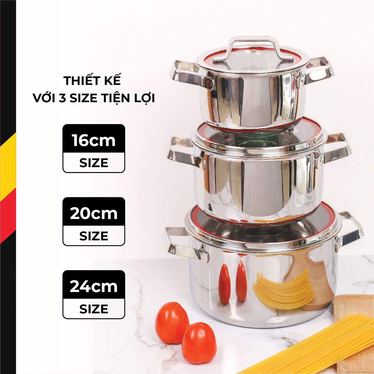 Size 24cm: Đường kính nồi 24cm, cao 13.5cm, dung tích 5.5L