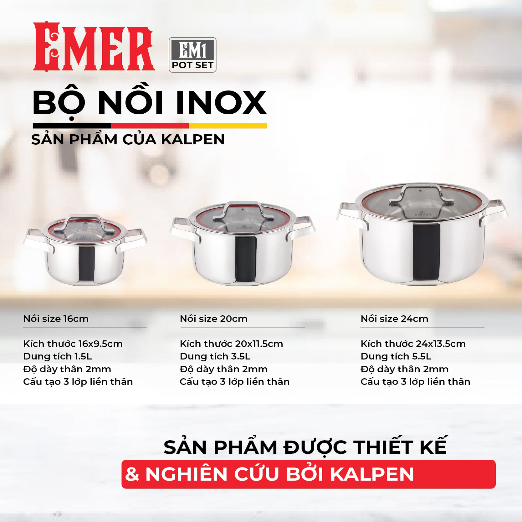 Kalpen Việt Nam giới thiệu tới bạn sản phẩm mới: Bộ nồi inox 3 lớp liền khối Kalpen Emer EM1 để bạn có thêm sự lựa chọn khi có nhu cầu mua sắm bộ nồi nấu nhé!