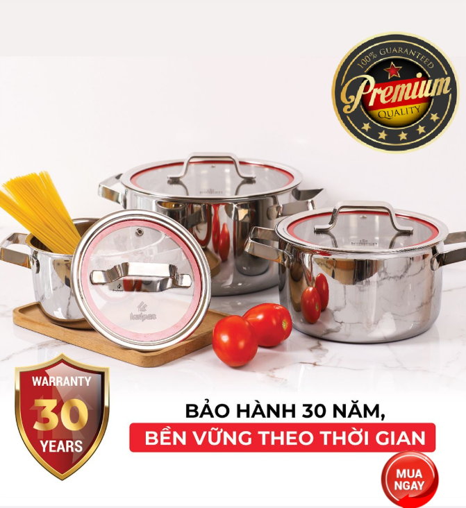Khi sức khỏe và chất lượng sản phẩm nhà bếp trở thành mối quan tâm hàng đầu của người tiêu dùng hiện đại, việc lựa chọn bộ nồi inox không chỉ cần đảm bảo tiện ích mà còn phải đáp ứng các tiêu chuẩn quốc tế nghiêm ngặt.. Kalpen Emer EM1 – bộ nồi inox 3 lớp đúc liền khối thế hệ mới chính là lời khẳng định mạnh mẽ của thương hiệu Kalpen về cam kết mang đến những sản phẩm an toàn tuyệt đối cho sức khỏe, tiết kiệm năng lượng và bền bỉ theo thời gian.
