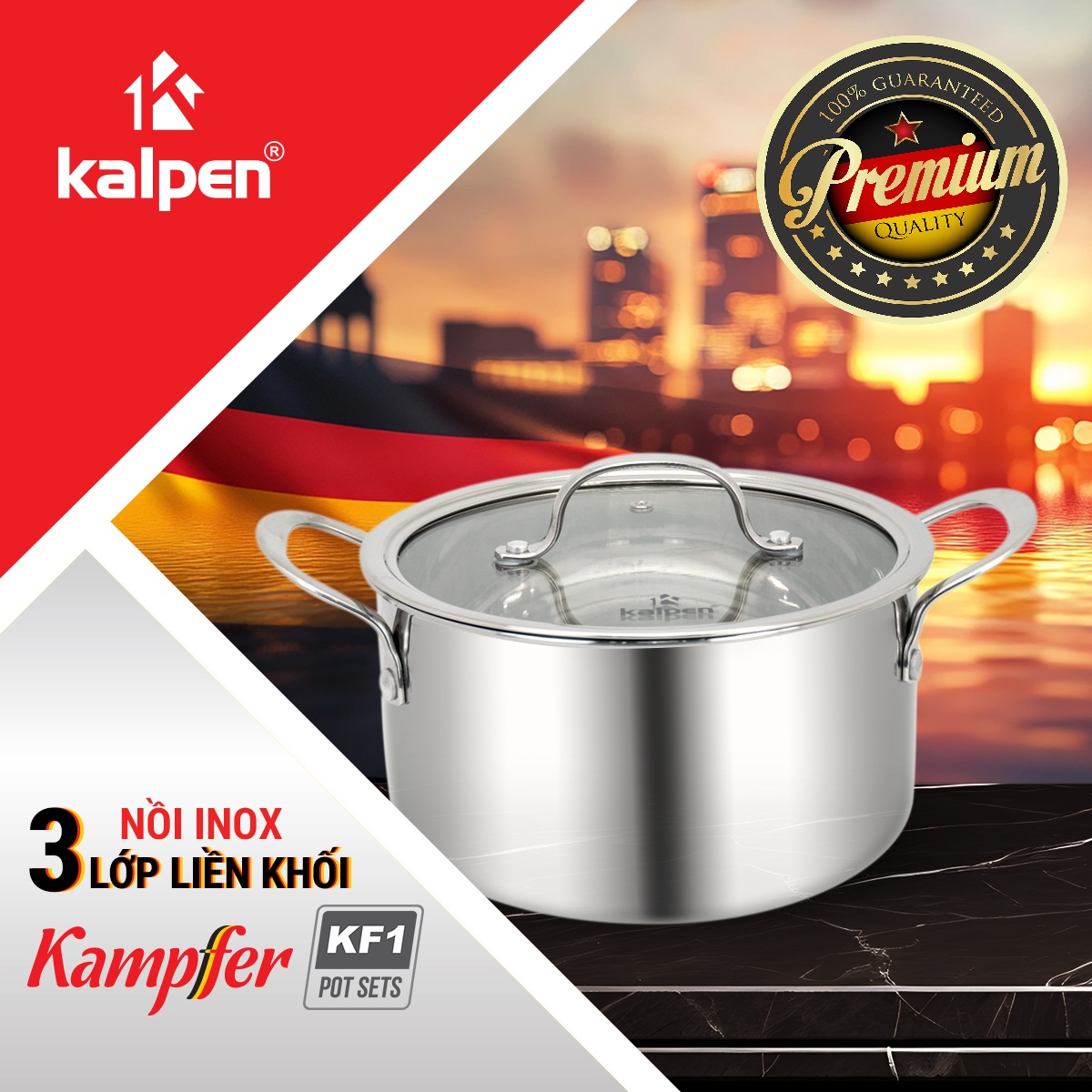 Kalpen Việt Nam giới thiệu bộ nồi inox 3 lớp liền khối Kalpen Kampfer để chị em nội trợ có thêm sự lựa chọn khi mua sắm cho gia đình hoặc sử dụng làm quà tặng tân gia rất ý nghĩa nhé!