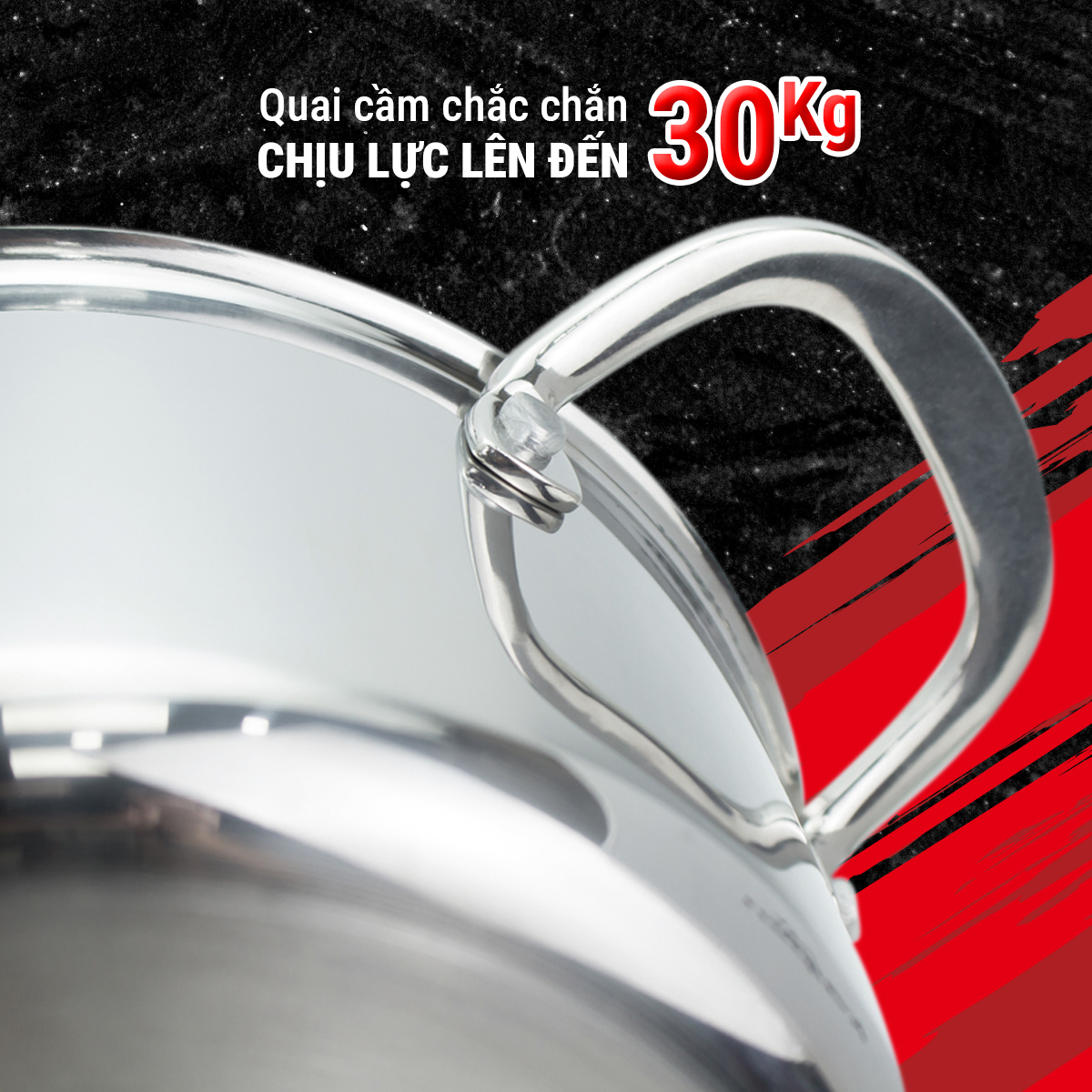 Quai nồi thiết kế thanh mảnh nhưng chắc chắn, có khả năng chịu lực và hạn chế truyền nhiệt để người dùng thoải mái nâng nhấc, di chuyển nồi mà không sợ bị nóng, bỏng.