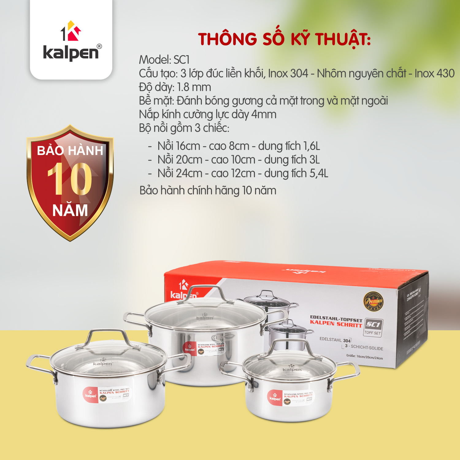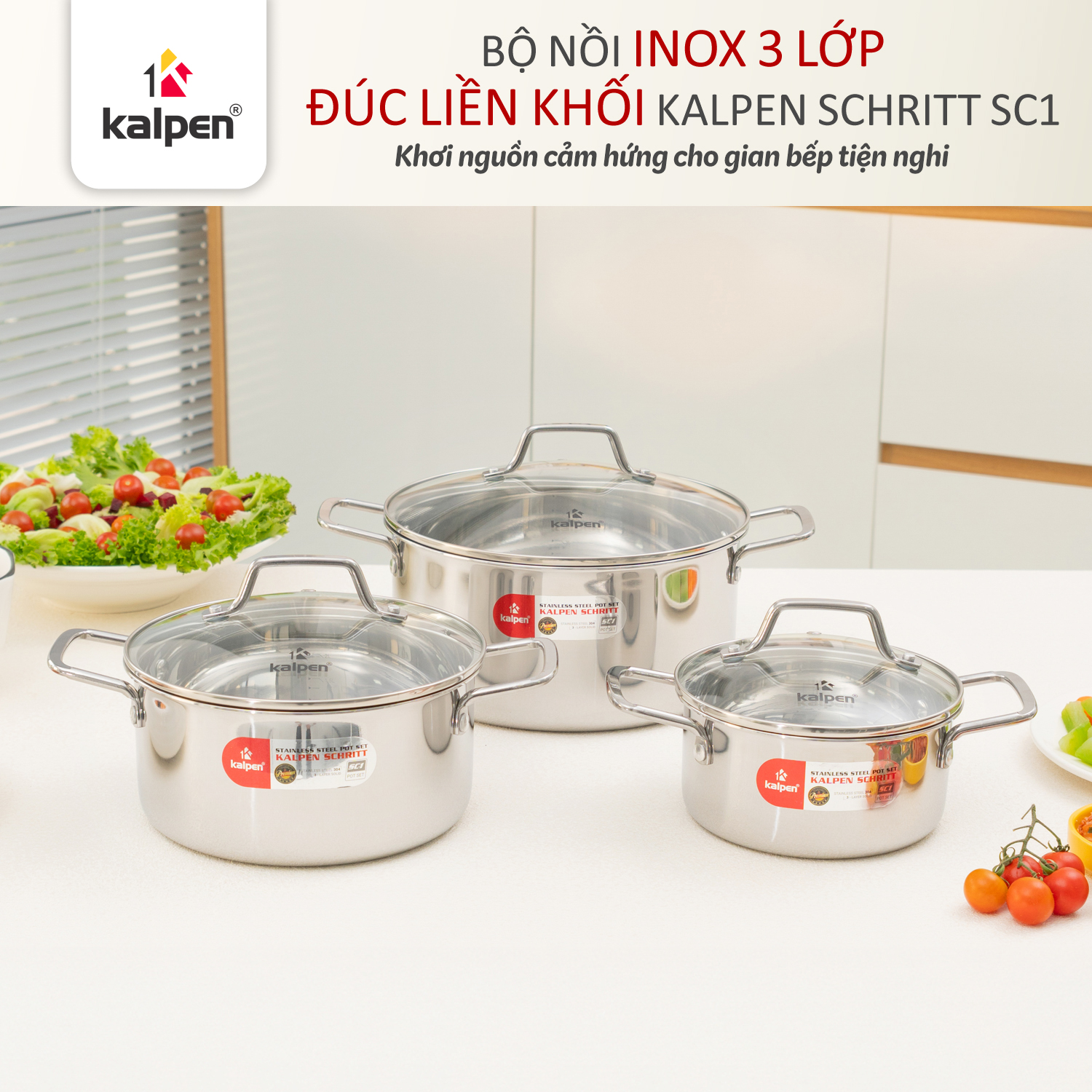 Video giới thiệu bộ 3 nồi Inox 304 liền khối Kalpen Schritt SC1 16-20-24 cm