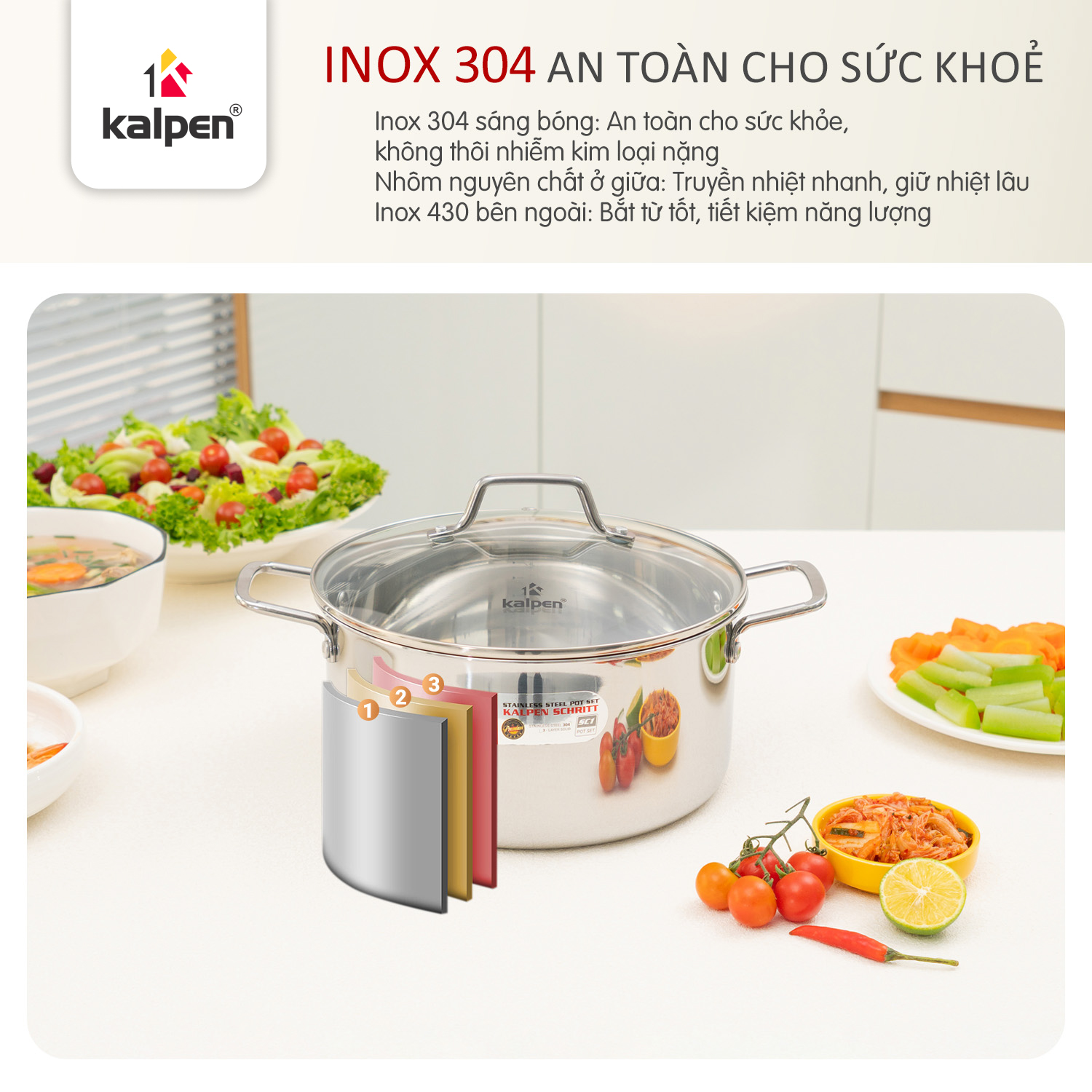 Nhờ khả năng giữ nhiệt lâu và ổn định, bộ nồi Inox Kalpen Schritt SC1 giúp thực phẩm được nấu chín ở mức nhiệt lý tưởng, hạn chế thất thoát dưỡng chất và duy trì hương vị nguyên bản. Khi nấu các món hầm, súp hoặc kho, bạn sẽ cảm nhận rõ sự khác biệt: món ăn mềm tự nhiên, giữ được vị ngọt tự nhiên của thực phẩm. Cũng vì thế, các đầu bếp chuyên nghiệp luôn ưu ái dòng nồi 3 lớp liền khối và Kalpen Schritt SC1 chính là một lựa chọn hàng đầu trong phân khúc này.